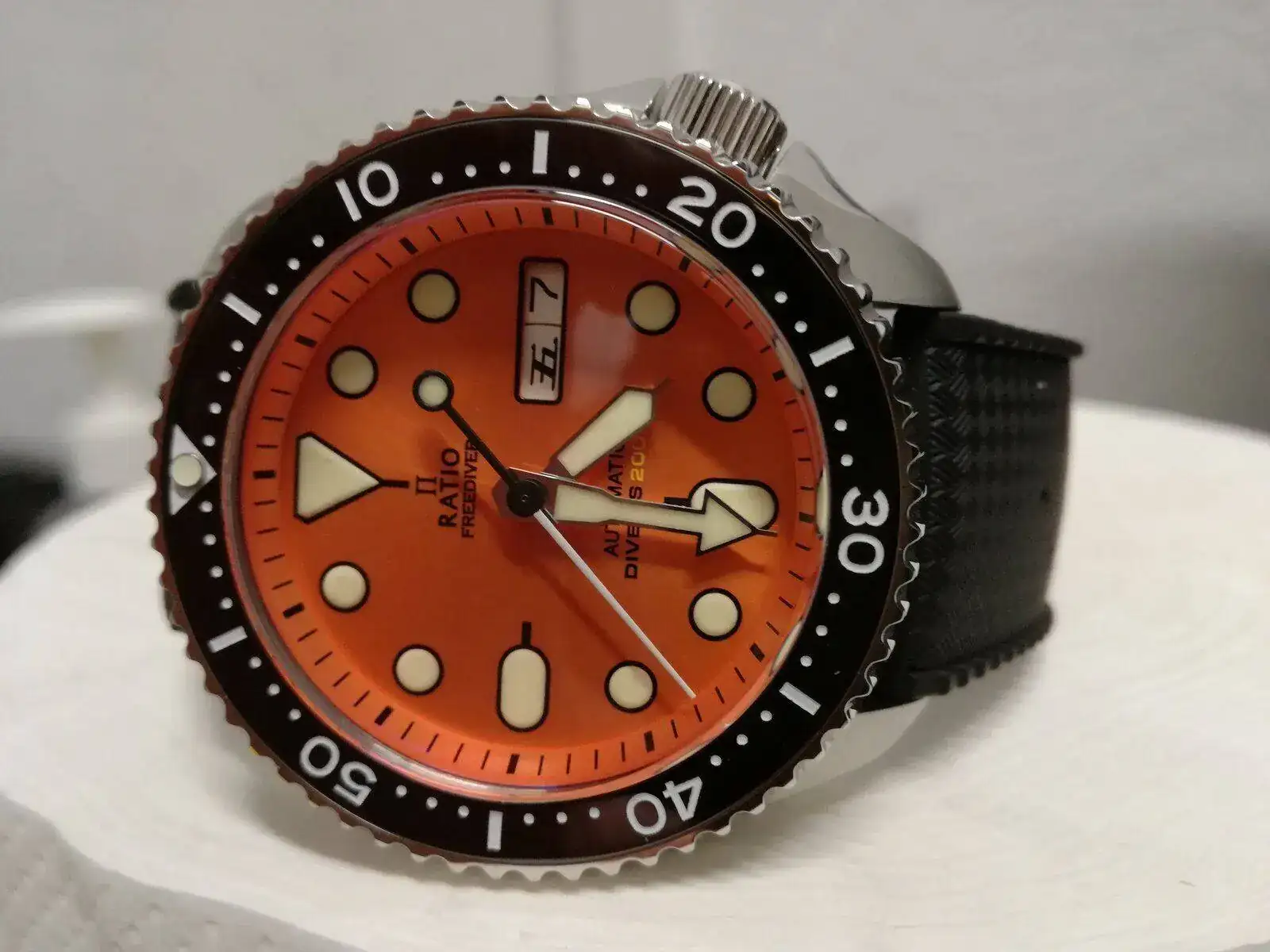 Se trata del querido Orient Kamasu, hace unos meses tomé la decisión de empezar de cero mi colección vendiéndolo “todo”por eso mismo esta belleza se trata de mi primer diver en la caja, una locura los colores que da ese dial y que increíbles acabados, los cuales son aún más sorprendentes tratándose de un reloj que me costo menos de 200 dólares.