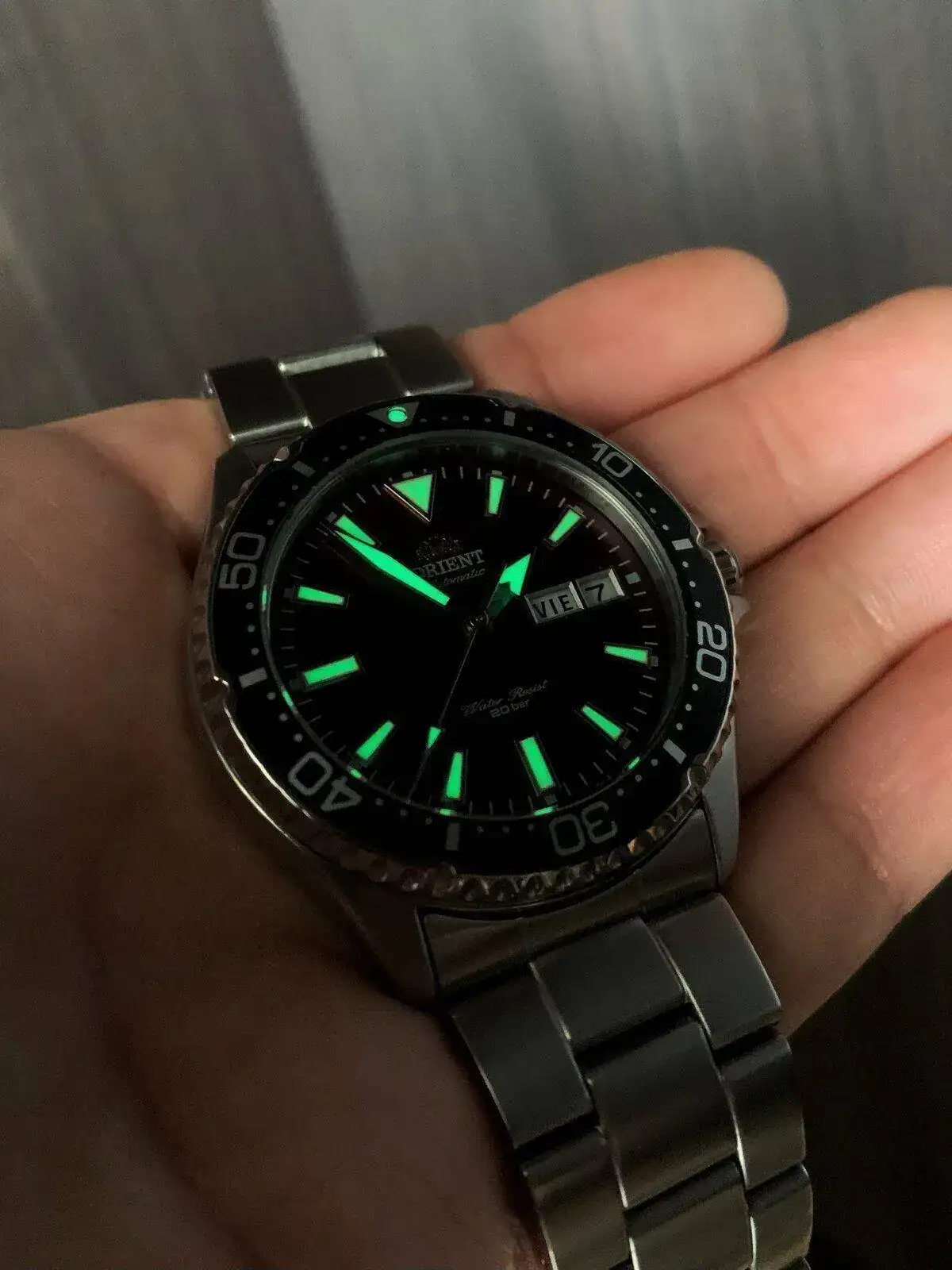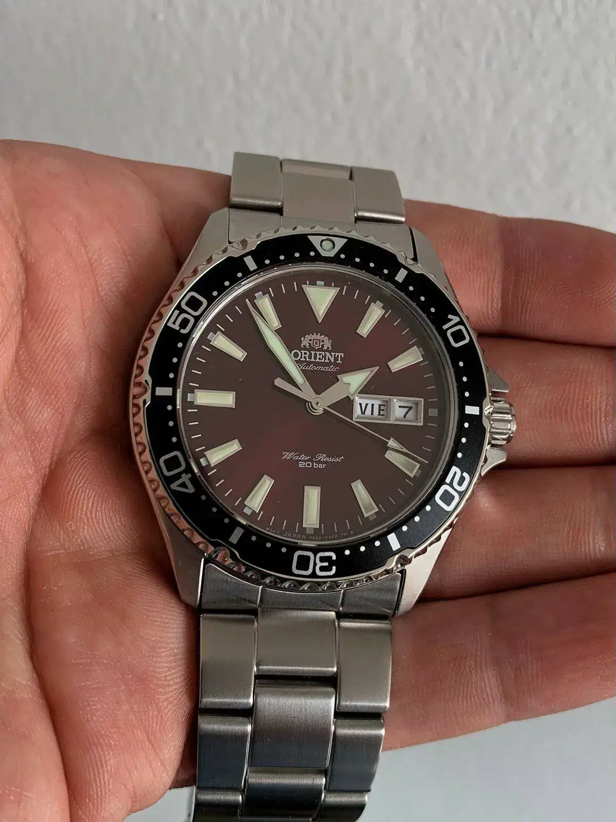 Se trata del querido Orient Kamasu, hace unos meses tomé la decisión de empezar de cero mi colección vendiéndolo “todo”por eso mismo esta belleza se trata de mi primer diver en la caja, una locura los colores que da ese dial y que increíbles acabados, los cuales son aún más sorprendentes tratándose de un reloj que me costo menos de 200 dólares.