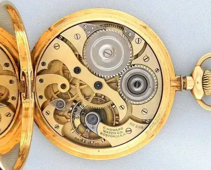 Efectivamente, se trata del Howard "EdHoward" y fue una edición muy limitada, creo recordar que de 600 ejemplares y por eso es imposible de encontrar hoy en dia y alcanza precios desorbitados. Si te fijas en las ruedas de carga son al estilo europeo (dientes de lobo) e incorpora ya en el volante (como hicieron más fabricantes norteamericanos) lo que décadas después la propia Patek bautizó y patentó como Gyromax.
