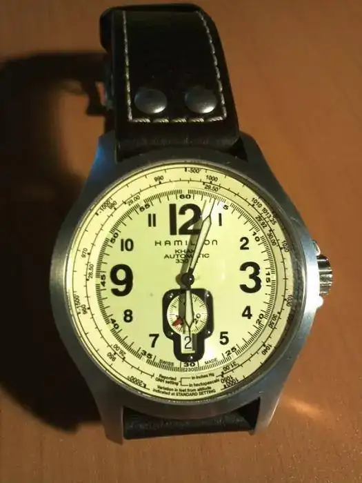 Voy al tema: en abril me regalé por mi cumpleaños un Hamilton Khaki QNE Automático. Lo he usado poquito. El otro día lo saqué de la caja, le puse en hora y fecha, le dí un pelín de cuerda y a la muñeca. Llevo 4 días viendo que está aceleradísimo, creo que más de 10 segundos por minuto. De hecho, la foto que os pongo es de las 17:40, habiéndole puesto en hora a las 12. Se me adelanta más de una hora y media al día: