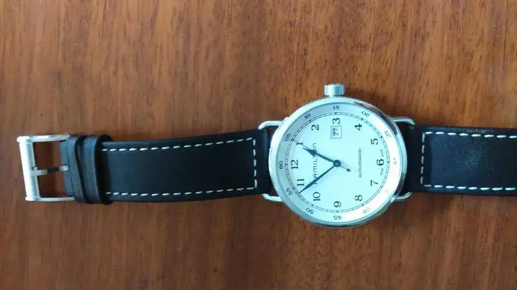 Muy bonito el reloj que más me gusta de hamilton con las agujas azuladas aunque me gustaba más con la correa marrón claro del anterior que lo disfrutes.