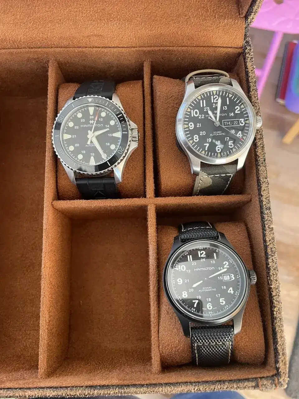 Aquí os presento a mis “Hammie”. Me encantan los Khaki Field y posiblemente el scuba 43 saldrá porque ya tengo varios scuba …