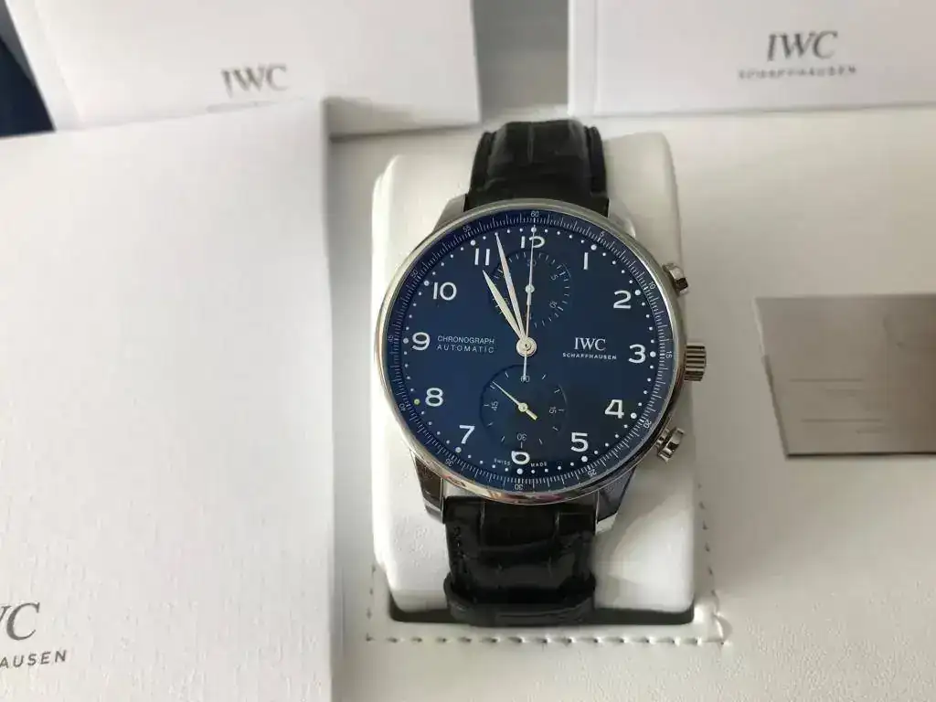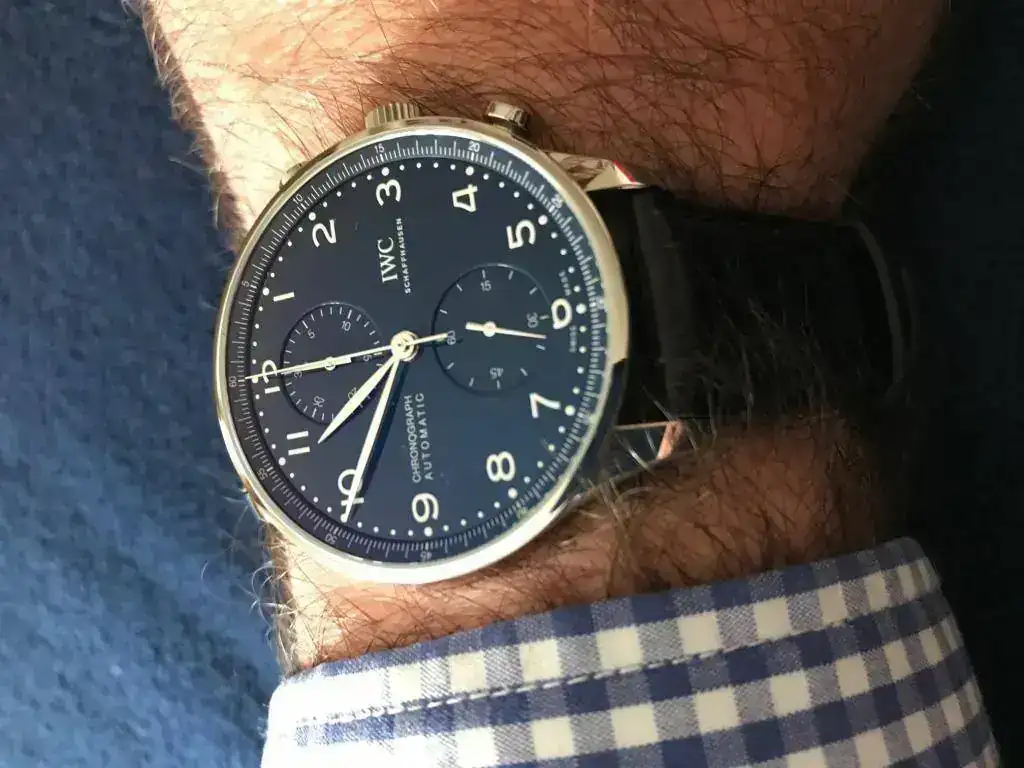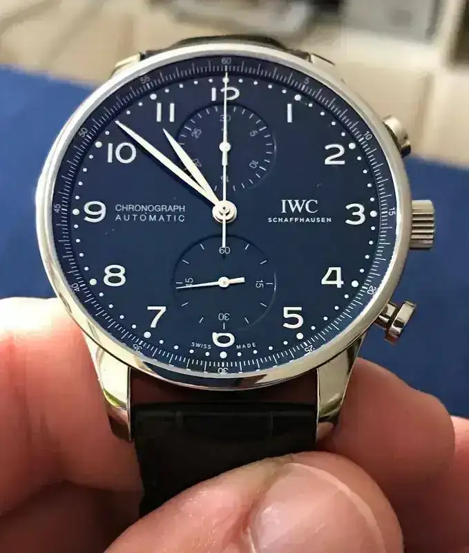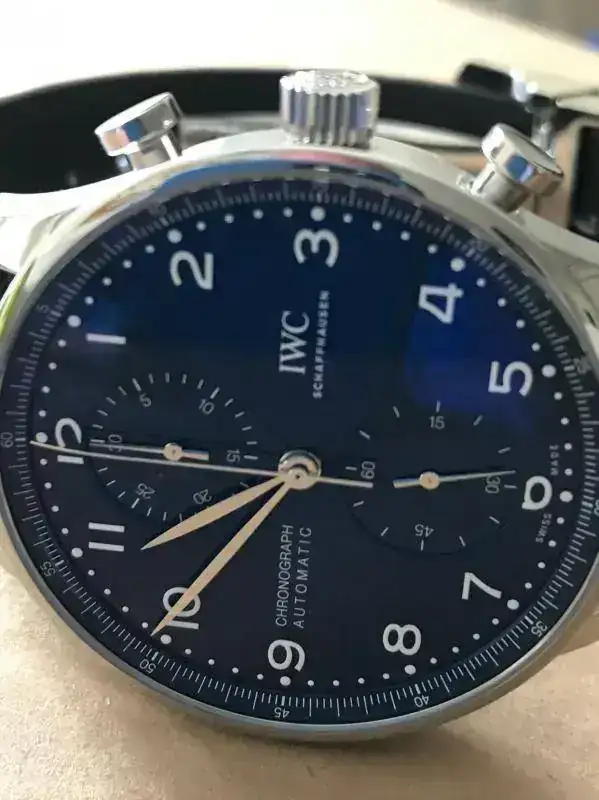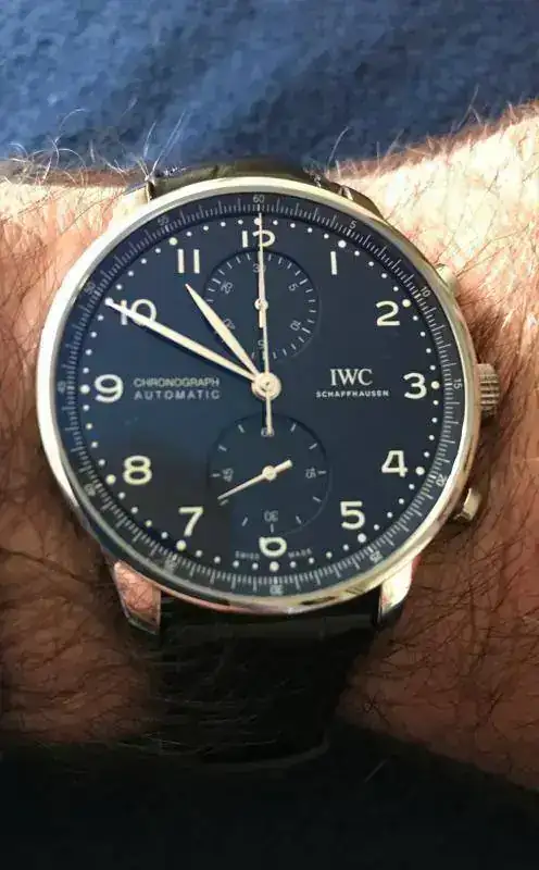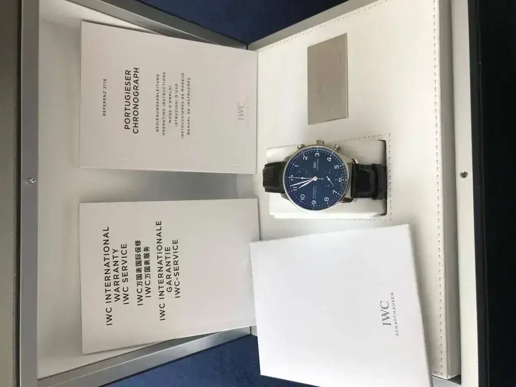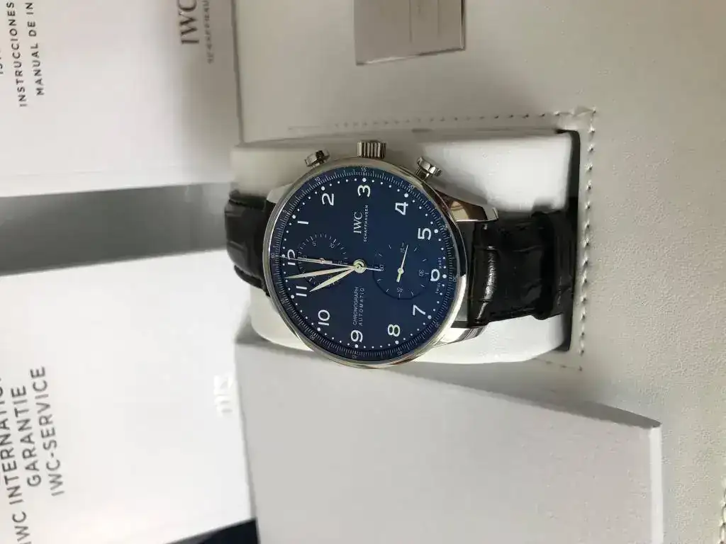 Estimados amigos del foro, os presento mi primer IWC. Despues de algunos Omegas deportivos y un GMT II Cerámico, buscaba algo elegante y a la vez discreto, mi decisión ha sido un Portugués crono esfera azul 150 aniversario, con calibre manufactura.