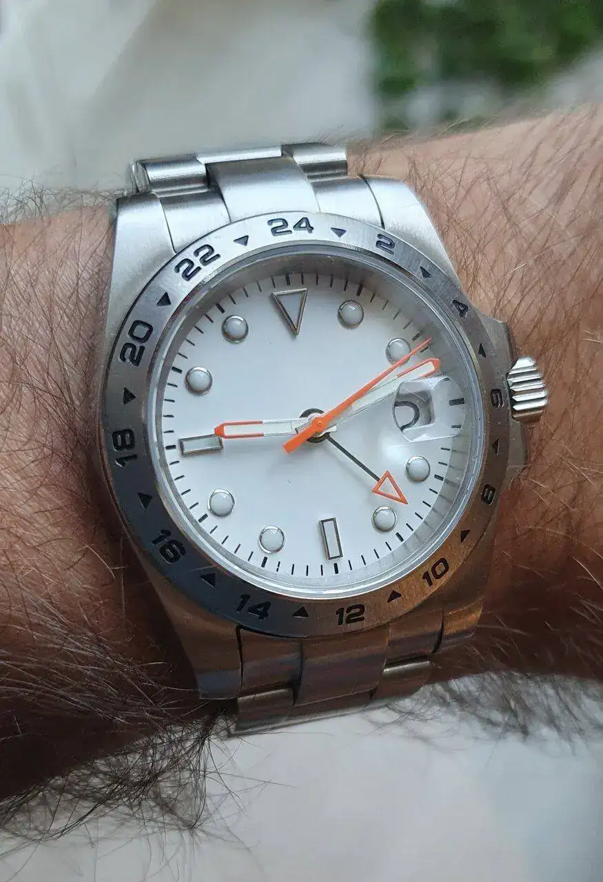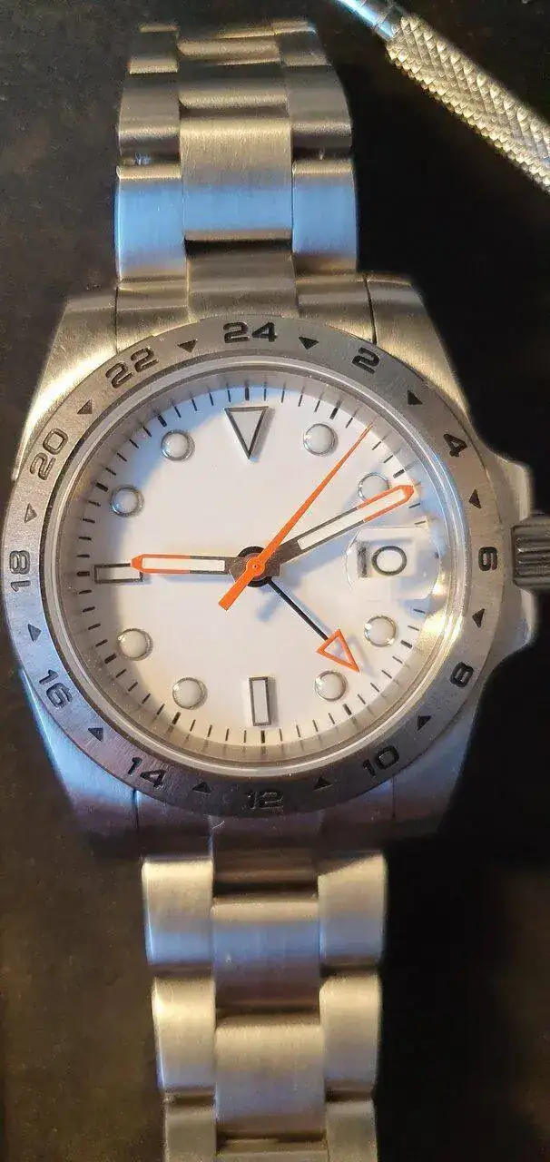 Con la aparición del movimiento nh34 se abre un nuevo mundo de personalizaciones de relojes con aguja GMT. Solo hay que tener en cuenta dos cuestiones: el dial debe tener un agujero mayor para dejar espacio para el encaje de la aguja suplementaria y hay que tener cuidado con el espacio diaponible entre el dial y el cristal.