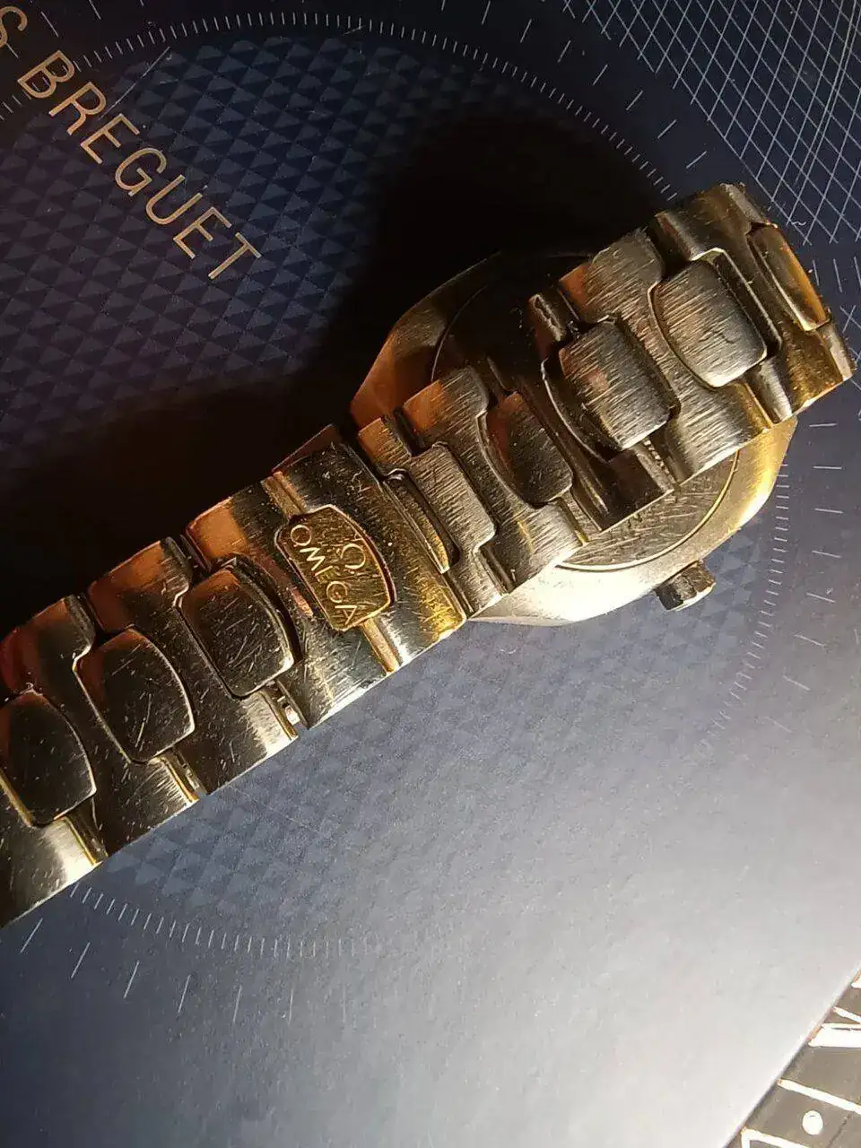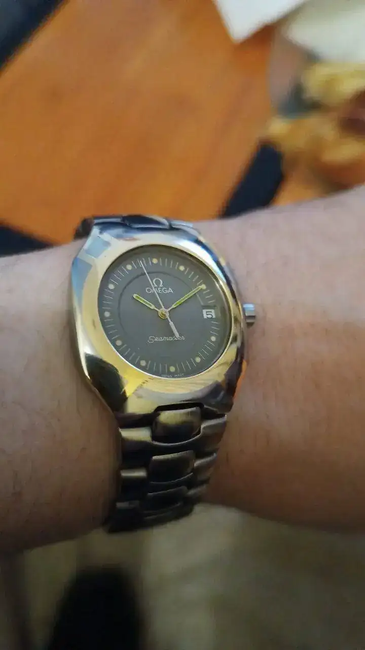 Ahi vi que la cosa venia en serio. No conocía el modelo. Jamas lo había visto y lo compartí en el grupo de cronopatas que tenemos con varios Argentinos. Rápido llego el modelo, es un Omega Seamaster "Polaris", en titanio y oro, de la década de los 80, del cual hay un par de posts en el foro, diseño de Genta, promocionado en su momento por súper Mac!