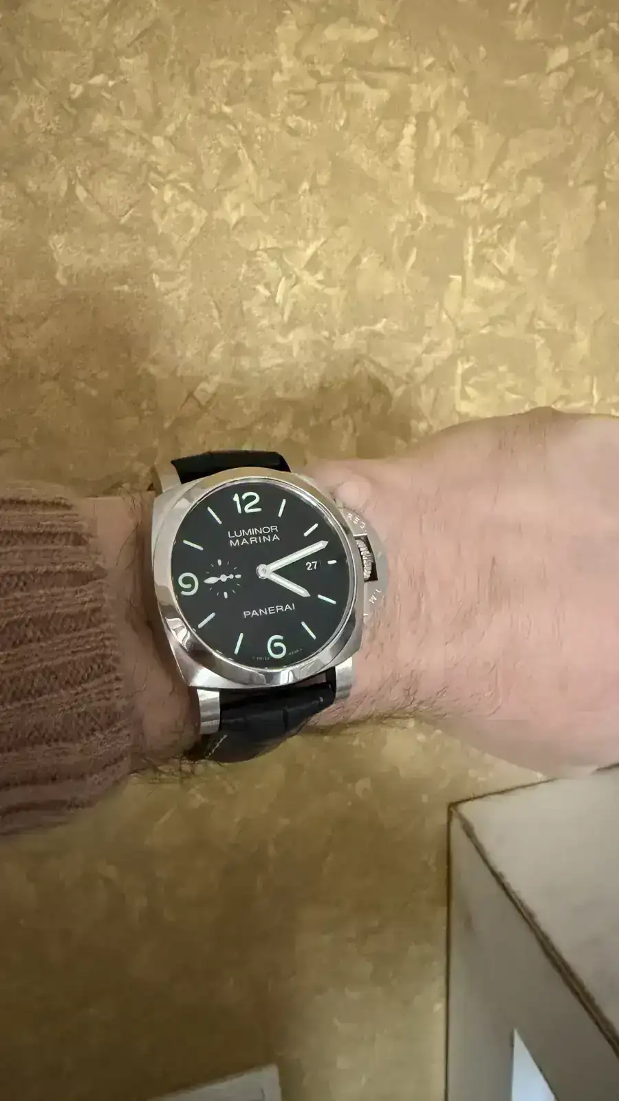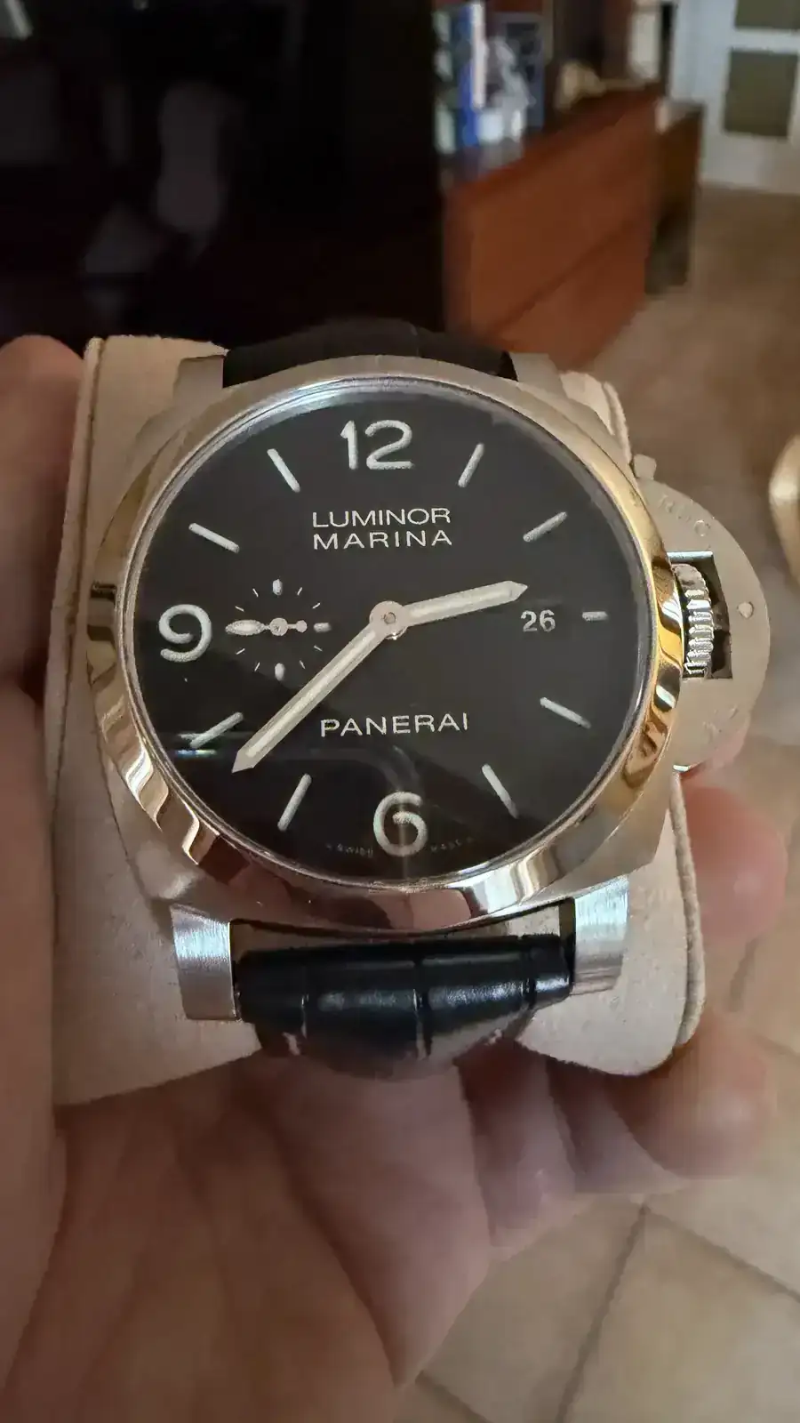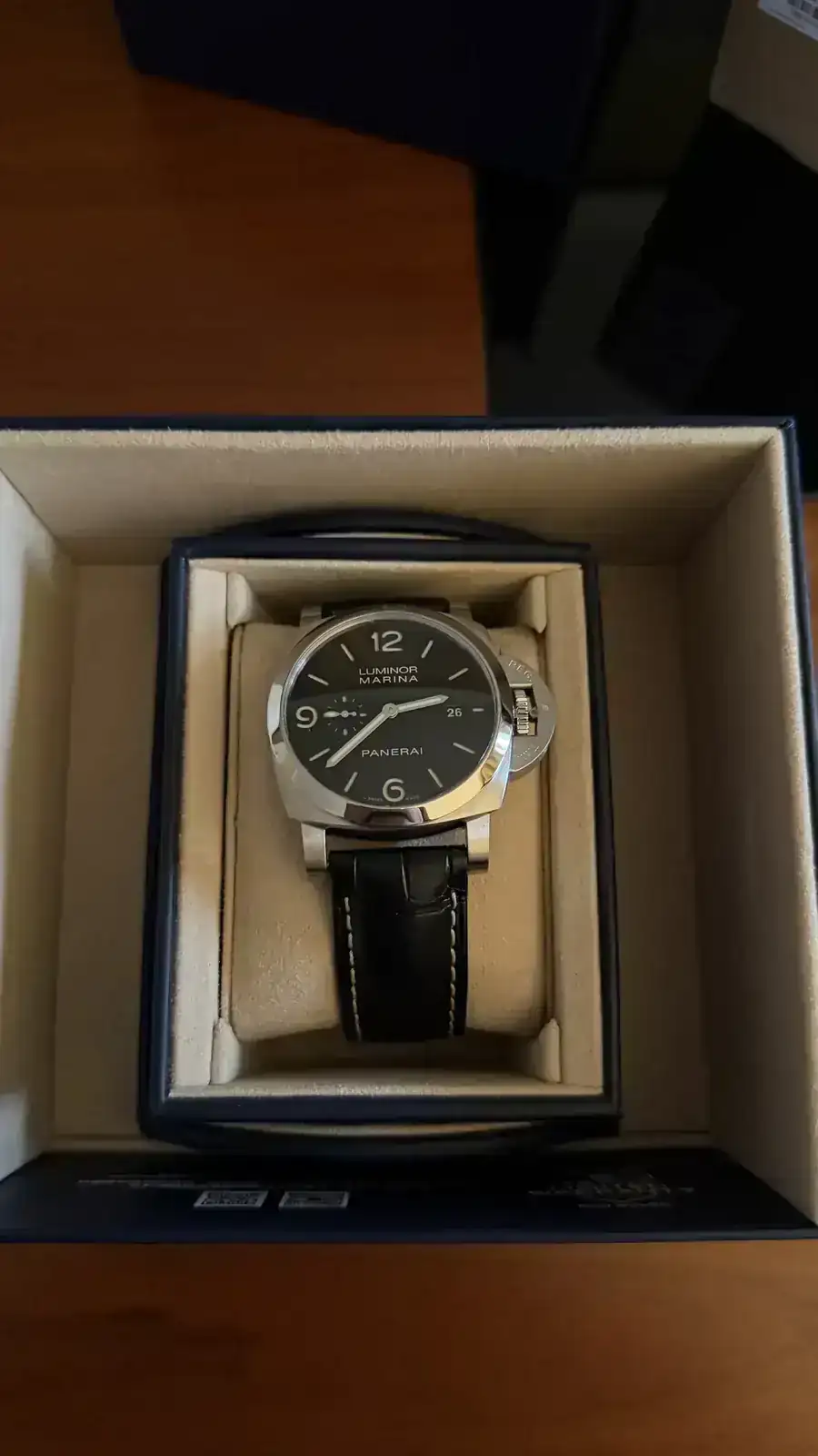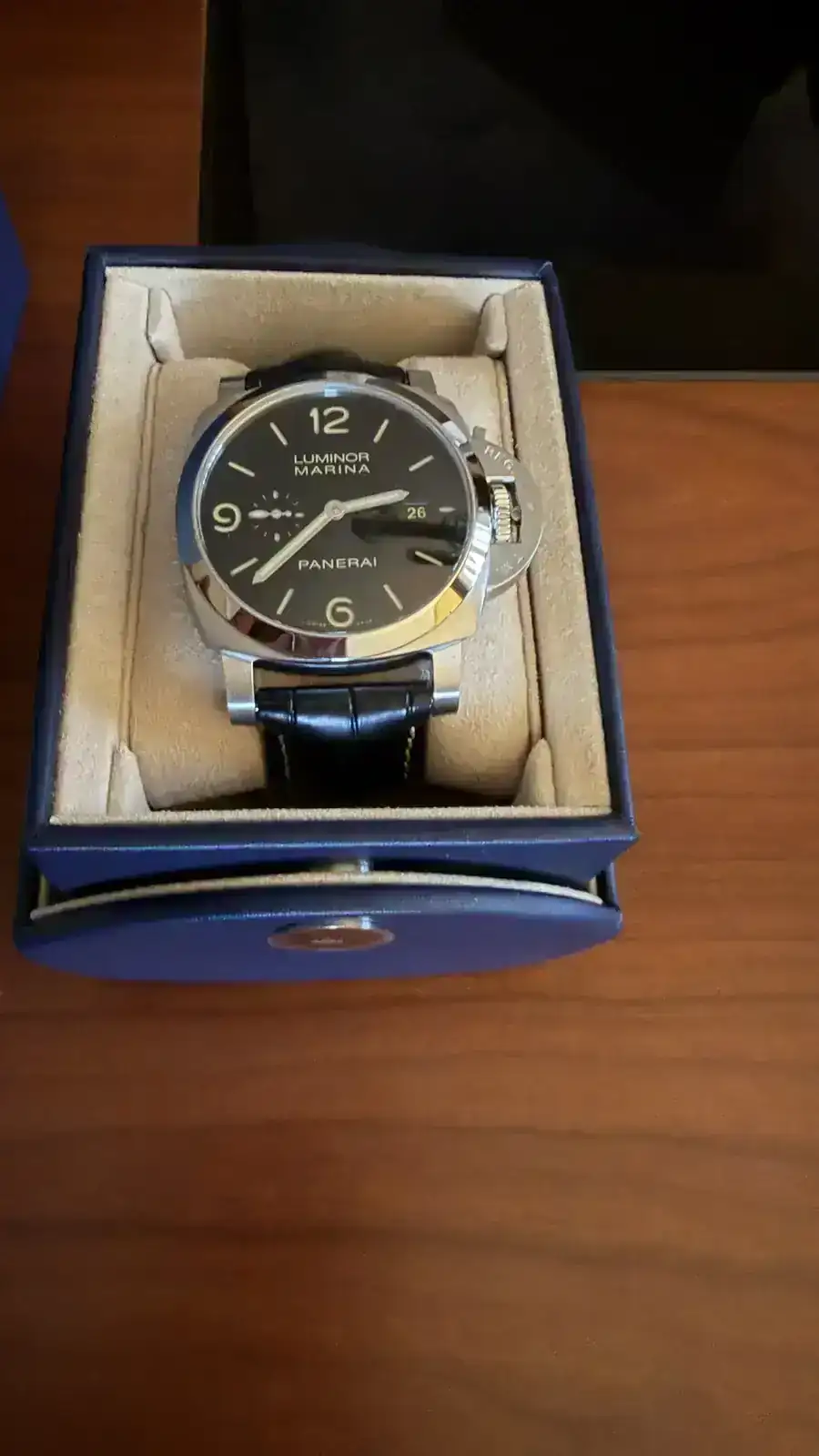Buenas, pues hoy por fin me ha llegado mi primer Pam. La verdad es que hasta hace dos años, me parecían feos, feos, pero de ese tiempo para acá cada vez me gustaban más. Mi mujer me decía que anda que no había relojes más bonitos y que a ella no le gustaban nada. Hasta que se lo probó en El Cronómetro (Sevilla) en octubre y quedó tan prendada que lo compró. Ahora ya no había excusa y el primer reloj del año ya ha caído.
