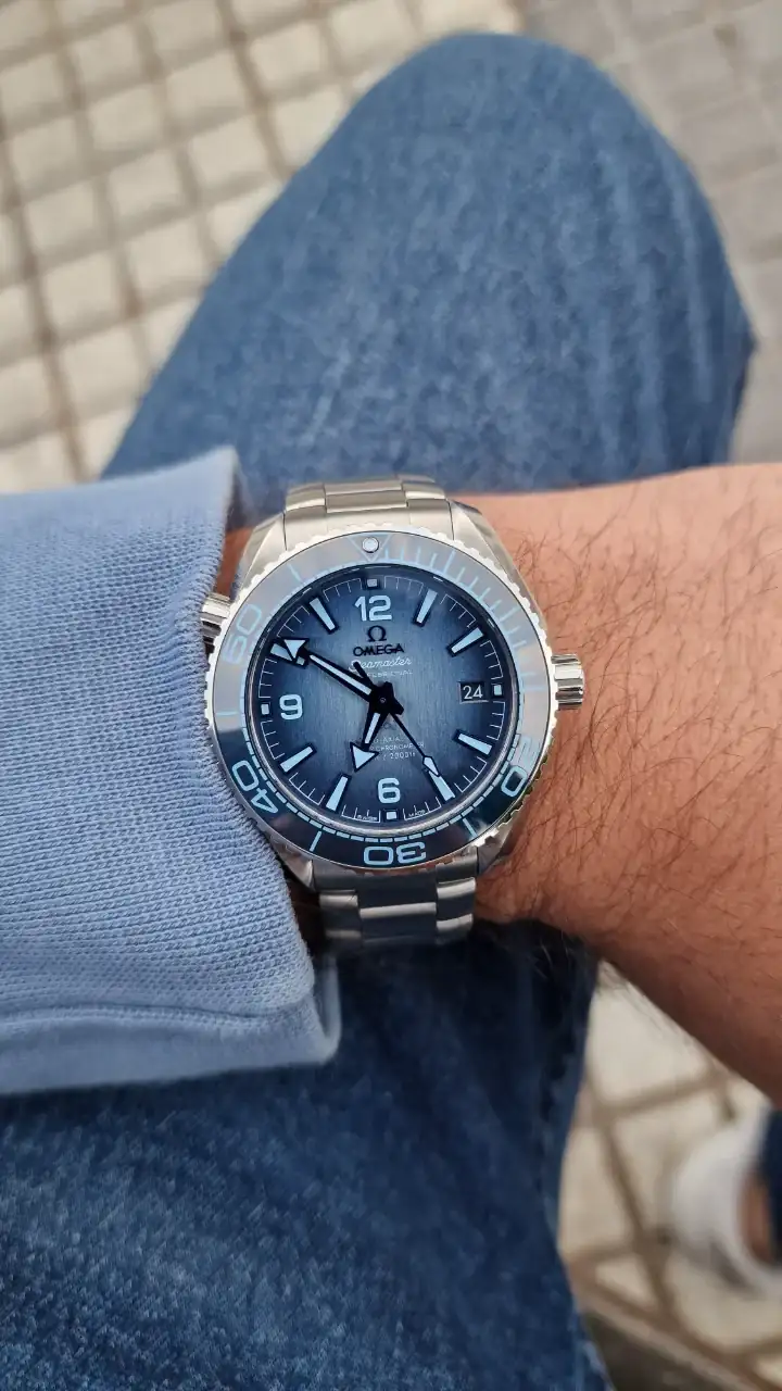 Hace unos meses publiqué un hilo en el que estaba dudando entre el Omega Seamaster Planet Ocean estándar o la versión Summer Blue. Finalmente ayer me compré la versión Summer Blue y no puedo estar más contento. El reloj gana mucho cuando sales de la boutique y se aprecia con luz natural. Quizás fue una decisión mas arriesgada que la versión estándar que es más conservadora, pero este modelo fue por el que sentí la conexión.