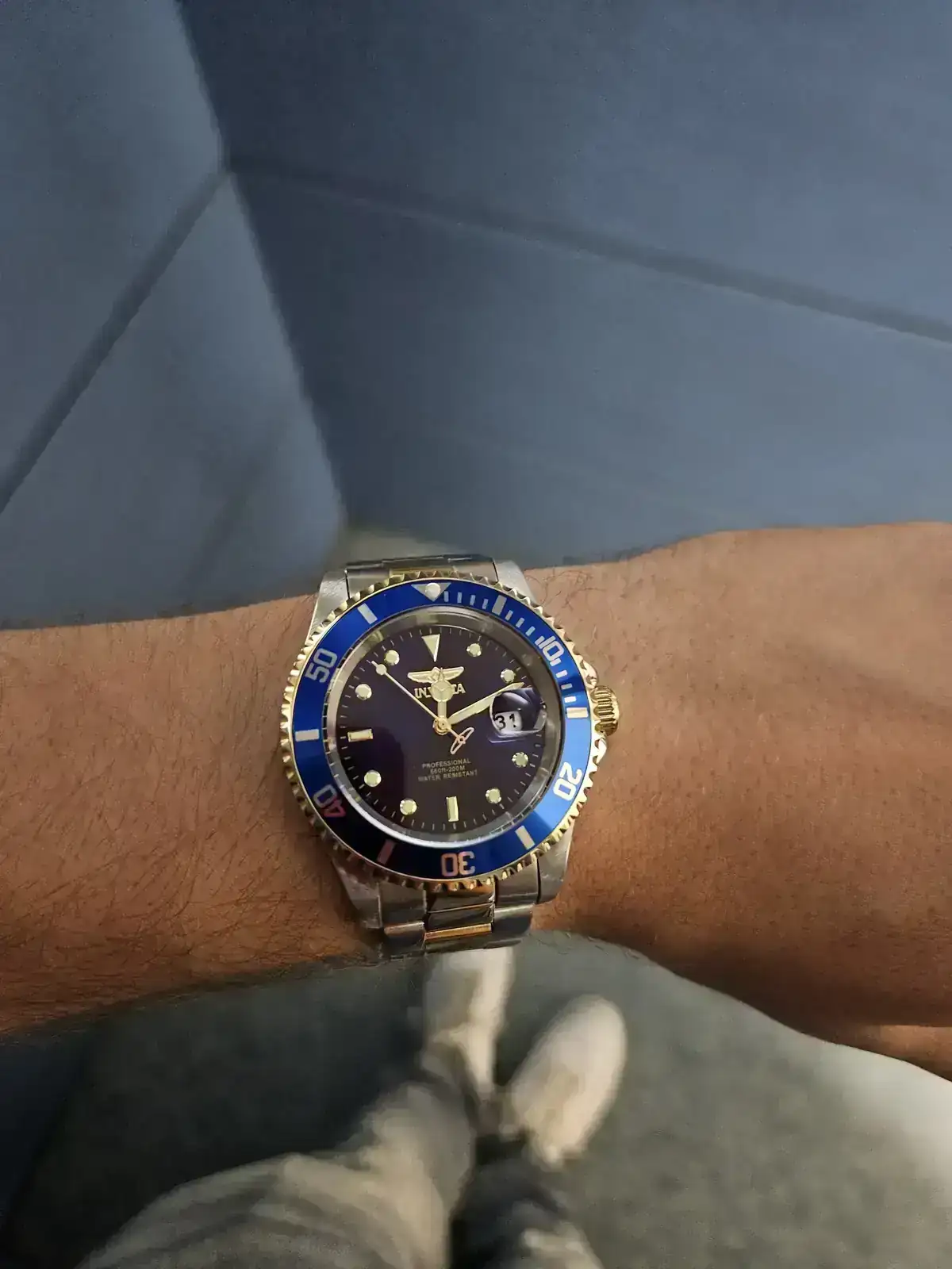 Os comparto algunas fotos de mi nuevo reloj, (y primer diver tal y como dice el título) un Invicta ProDiver. Lo vi en el escaparate de una relojería de mi barrio y me encapriché del modelo al instante. Si, se que es la copia del Rolex Submariner, pero, sinceramente, me da igual. Me gusta y eso es lo que me importa.
