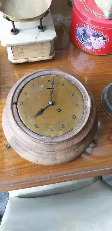 Asi encontre a este reloj, sin saber que era, de que se trataba, y si funcionaba. Solo pude ver que la maquina era casi por completo de bronce, y que segun el vendedor, "le dieron cuerda con una pinza, hace tiki, tiki, y mueve las agujas....