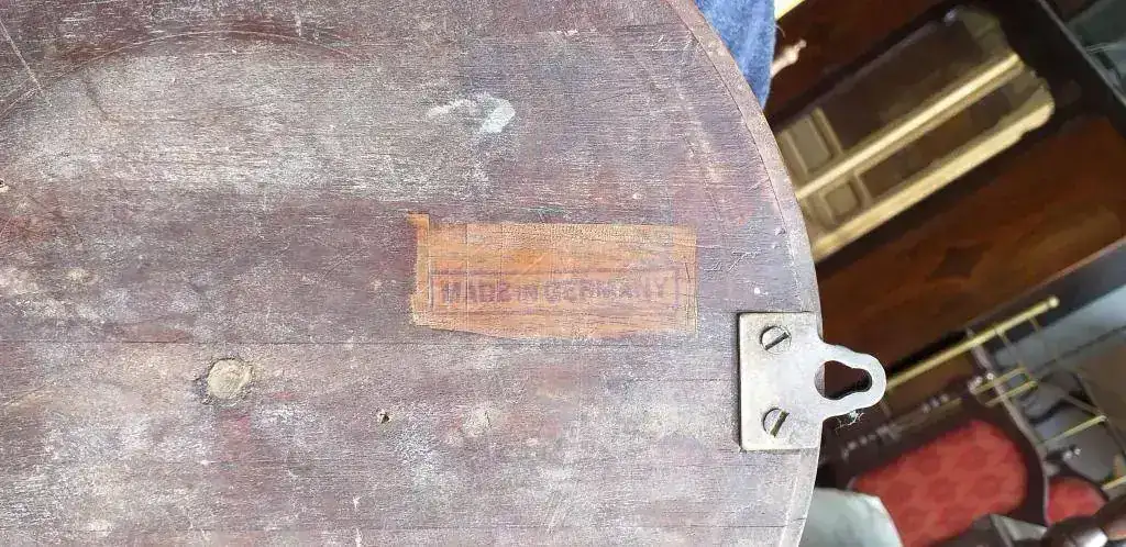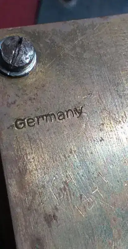 Hasta aqui nada raro, hermosa maquina, funcionaba aparentemente bien, algo manoseada aunque en muy buen estado, un sello en la madera dice MADE IN GERMANY, pero aparece esto: