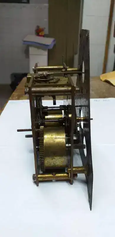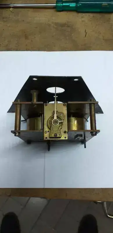 Buenas tardes, acabo de venir de presentaciones para tal fin, y ahora quiero que vean mi trabajo, para recibir consejos y reparar errores de mi primer proyecto. Hace unos 5 meses, me dirijo con mi hija a comprar un mueble en una casa de remates, para adquirir uno para reciclar y modernizar segun su gusto y uso actual. Al pasar por una mesa vi este reloj, que hoy es mi orgullo y satisfaccion al verlo como queda y en funcionamiento. Supe "saborear" (seguramente no a pleno, porque reitero NO SE NADA de relojes, mas que lo que lei y aprendi en este corto tiempo), en los dias de su reciclado/recuperacion/puesta en valor, lo que significa su maquinaria, y el romanticismo que significa "tratarlo en su recuperacion y el dia a dia cuando le doy cuerda. Presento y explico:
