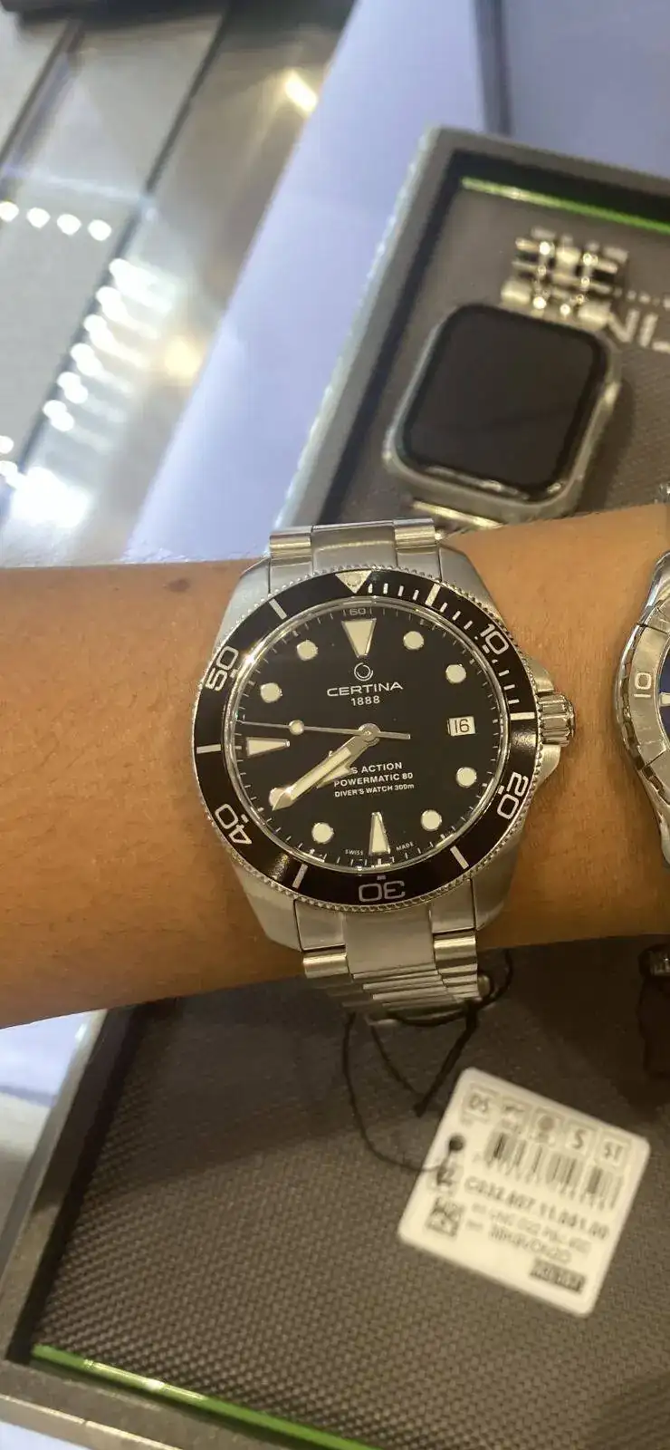 El tissot aunque sea de 43,la distancia de asa a asa es pequeña,lo que hace que el reloj no luzca tan grande.No soy mucho de Certina pero sin duda es el acertado aquí. El problema de los divers si tienes una muñeca más bien fina es que hay pocos que tengan menos de 40mm, porque claro, yo te recomendaría un Seiko Sumo, pero te puede quedar como una auténtica paella. Por lo tanto sí, yo creo que esos 38mm del Certina te pueden quedar muy bien.
