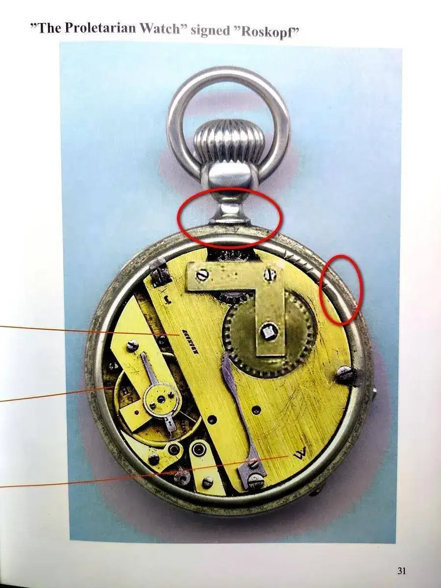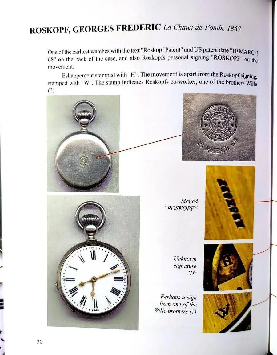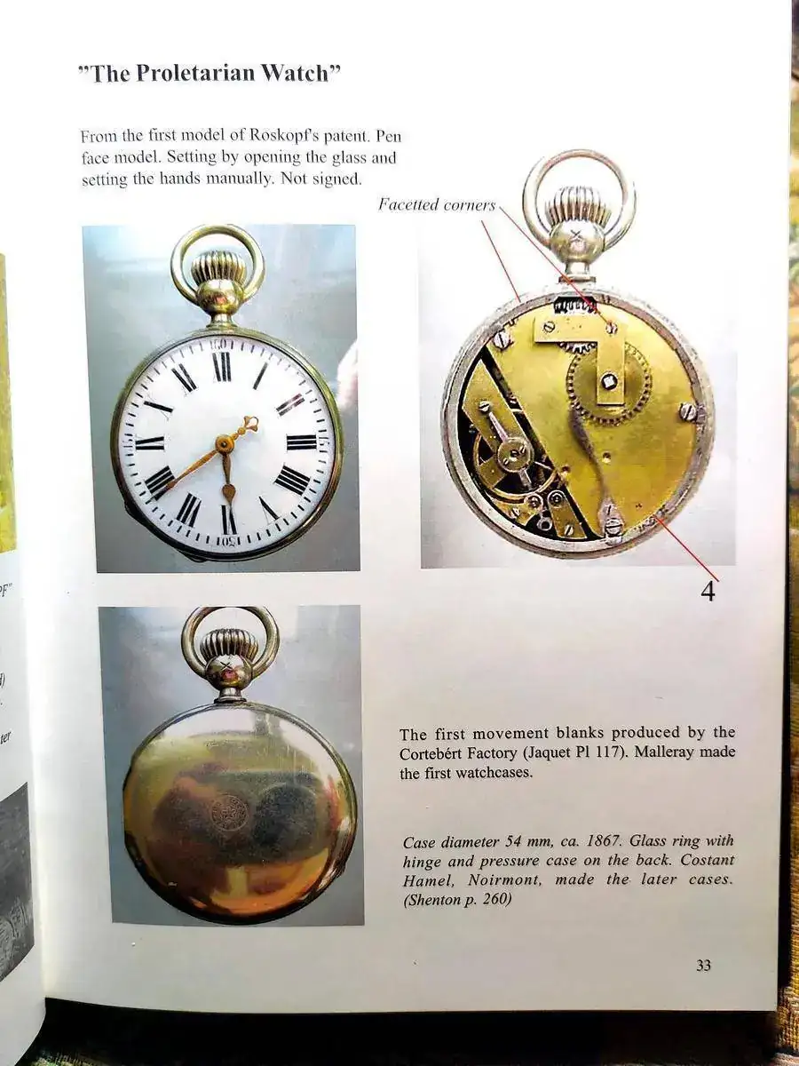 Hoy me siento verdaderamente afortunado de poder presentar este reloj que hacía mucho tiempo estaba deseando incorporar a mi pequeña colección. Se trata del "Montre proletaire" con el que su creador Georges-Frédéric Roskopf ganó la medalla de bronce el la exposición internacional de París ese mismo año y fue elogiado en público por el mismísimo Louis Breguet. Lo fascinante de este reloj, es que Roskopf lo diseño para que fuese robusto y simple, ergo económico, para poder llegar a las clases trabajadoras (de ahí su nombre). El calibre está simplificado al máximo y consta de 57 piezas, sin embargo incorpora un básico sistema de dar cuerda con la corona, cosa que la mayoría de relojes de su época aún no incorporaban. La hora se ajusta con el dedo, manualmente, sobre sus robustas agujas de latón. Como os podéis imaginar no es nada fácil encontrar un ejemplar en buen estado de esta primera generación de relojes y realmente escasean en el mercado del coleccionismo. Bueno, no me extiendo más, espero que os guste tanto como a mi. No tiene decorados sus puentes, sus rubís no están jalonados con chatones de oro, pero su importancia histórica en el mundo de la relojería no tiene parangón.