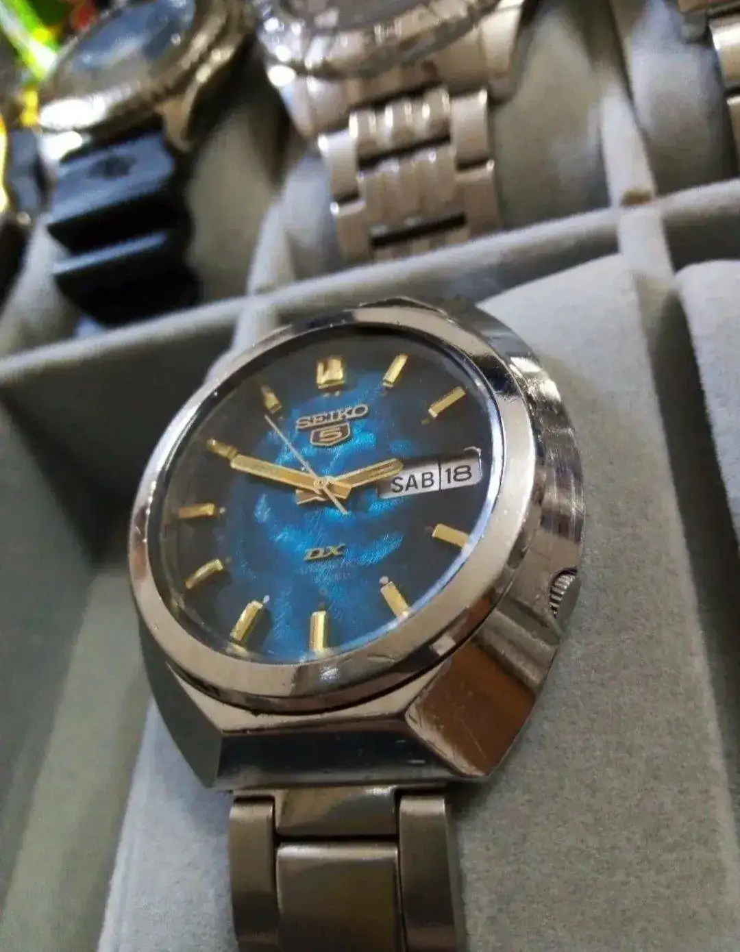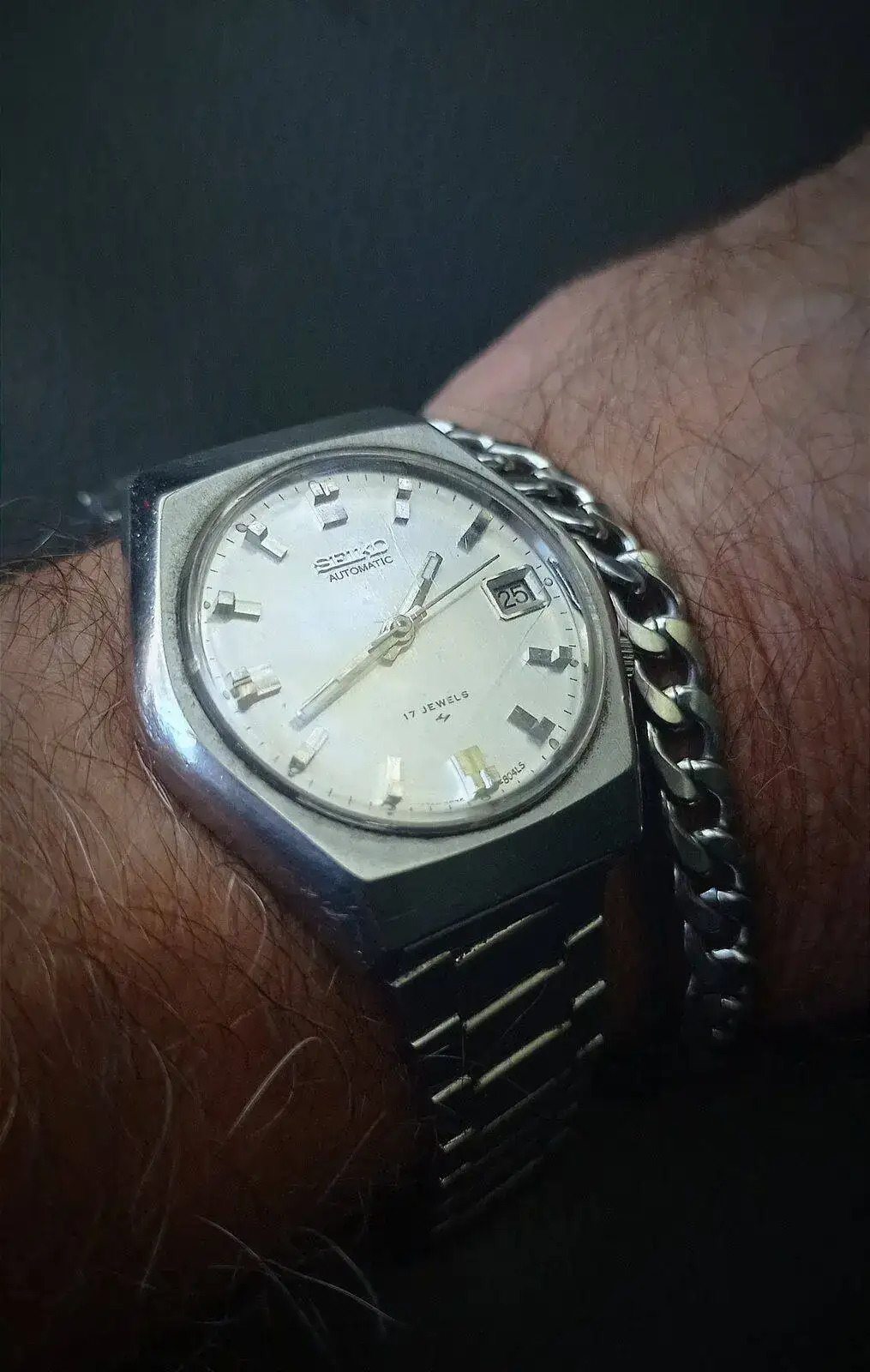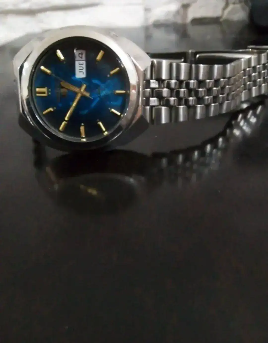 Es bonito, con ese claro diseño de los 70 tan de moda, pero parece que le han arruinado el dial intentando limpiarlo y ha perdido el marco de la ventana day-date... Pero si estuviera en un estado aceptable para su edad, te costaría 4 veces más.Nuevo candidato