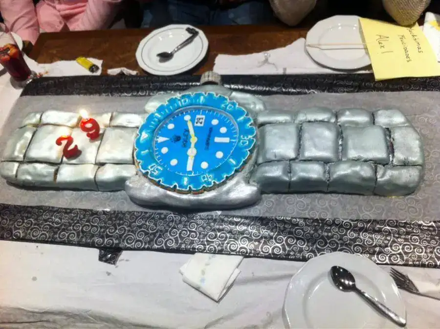 Qué regalazo! Oye seríais unos cuantos a la mesa porque parece un peazo de tarta grande grande... O eso o tienes Rolex para rato :D