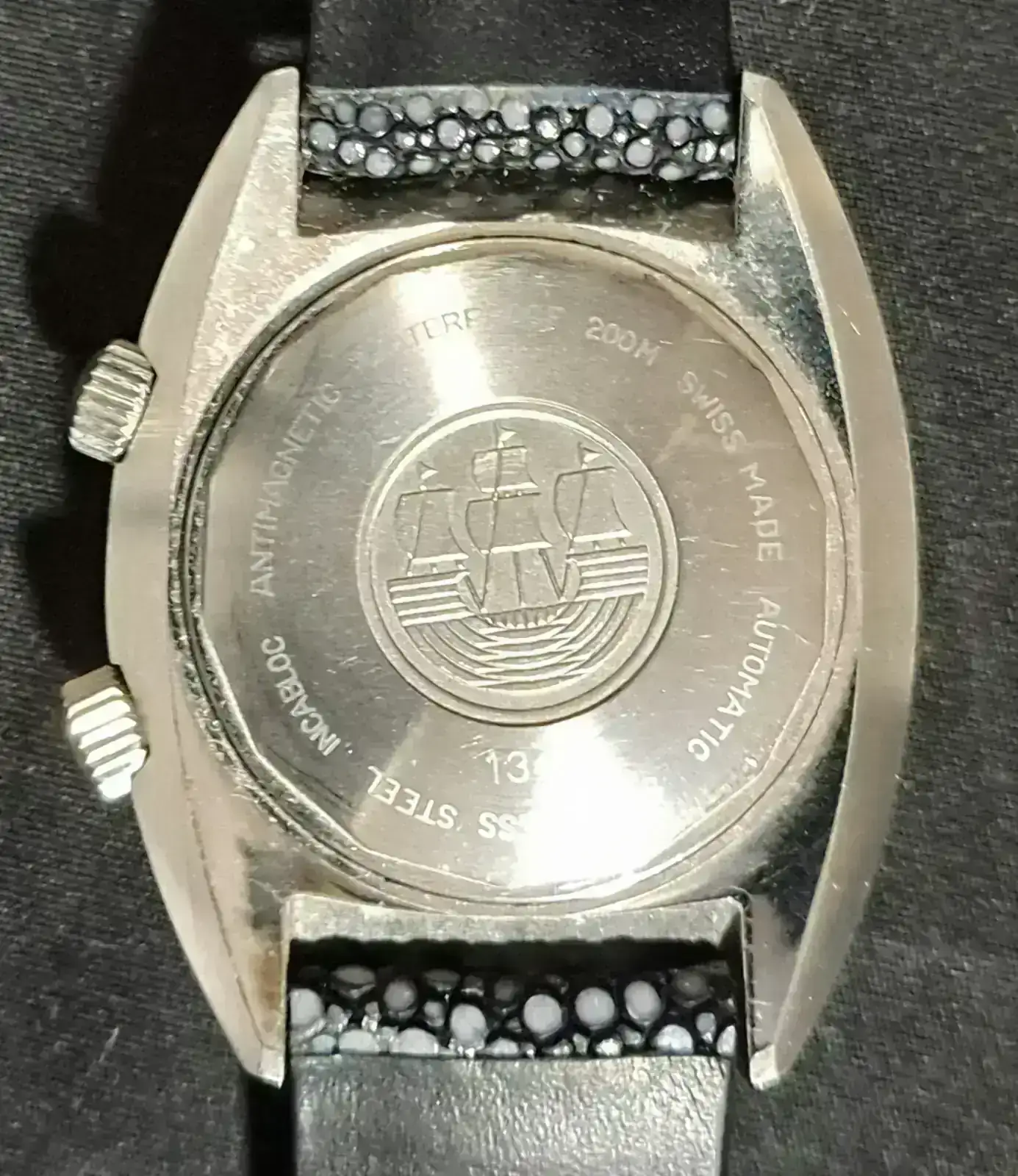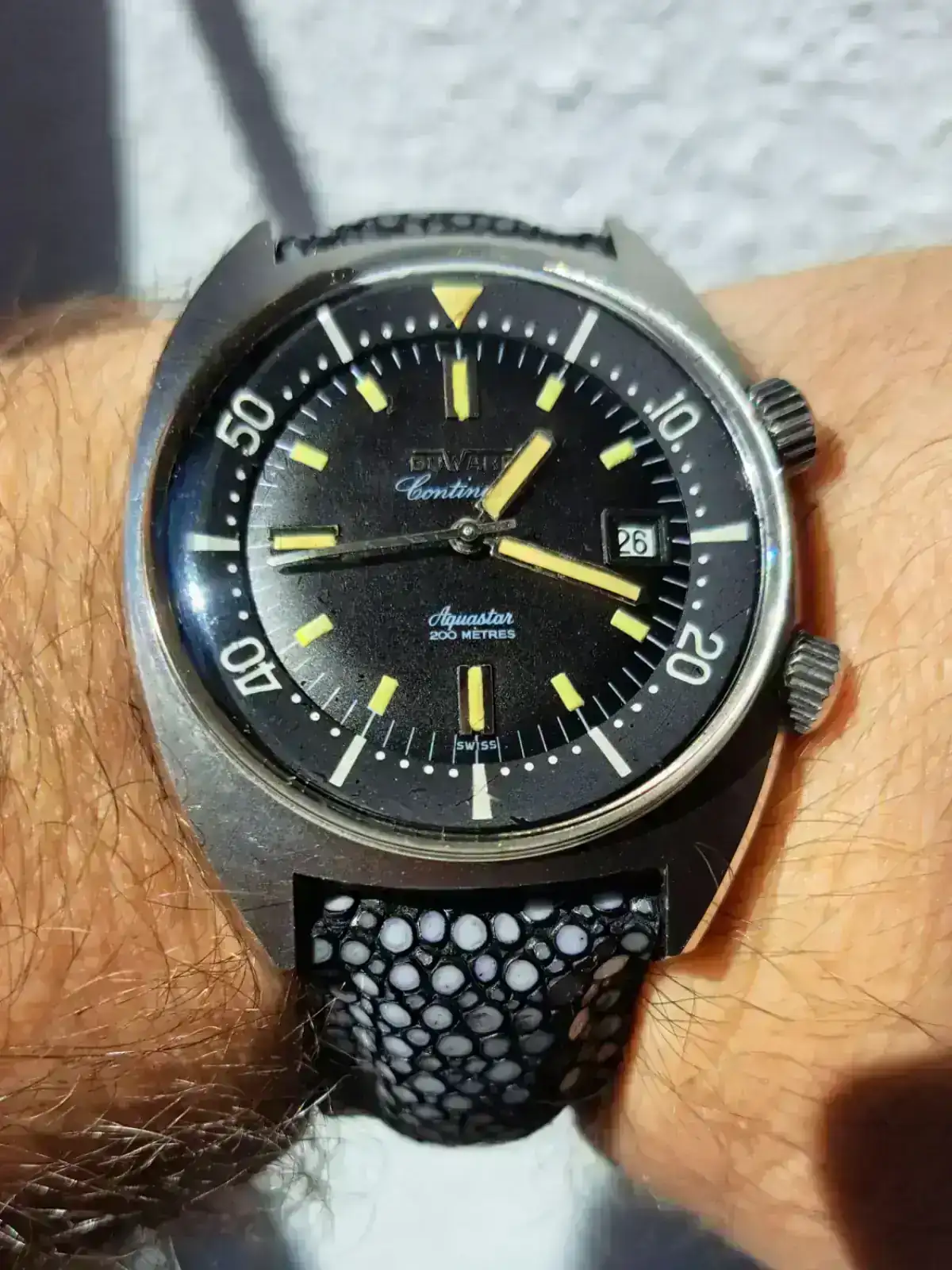 Estaba en bastante mal estado, el movimiento se había soltado y bailaba dentro de la caja y no funcionaba. Este lo reparó el taller de Luis Miguez, que van más despacio de lo que me gustaría y tienen un problema de comunicación (para mi gusto), pero que lo ha dejado perfecto, incluso le han reparado el lumen de las agujas, que estaba en mal estado y refuerza el aspecto vintage de este reloj.