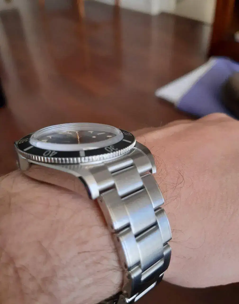 La verdad es que el hecho de que sea tan delgado el reloj hace que sea super cómodo.es un excelente reloj, cada vez que hacen diver mas delgados es una gran mejora, porque en realidad el tamaño de la caja y la medida de asa a asa van a afectar en la percepción de cómo el reloj queda en la muñeca, pero lo que afecta directamente en la comodidad real de uso es el grosor del reloj… como más delgado más cómodo será siempre y hacer relojes delgados con una buena resistencia al agua es señal de una ingeniería realmente optimizada para conseguir prestaciones súper competitivas, ya hay pocos divers que sean mas delgados que este… y si alguien conoce algunos me encantaría que lo comentara en el hilo para darles un vistazo 😉