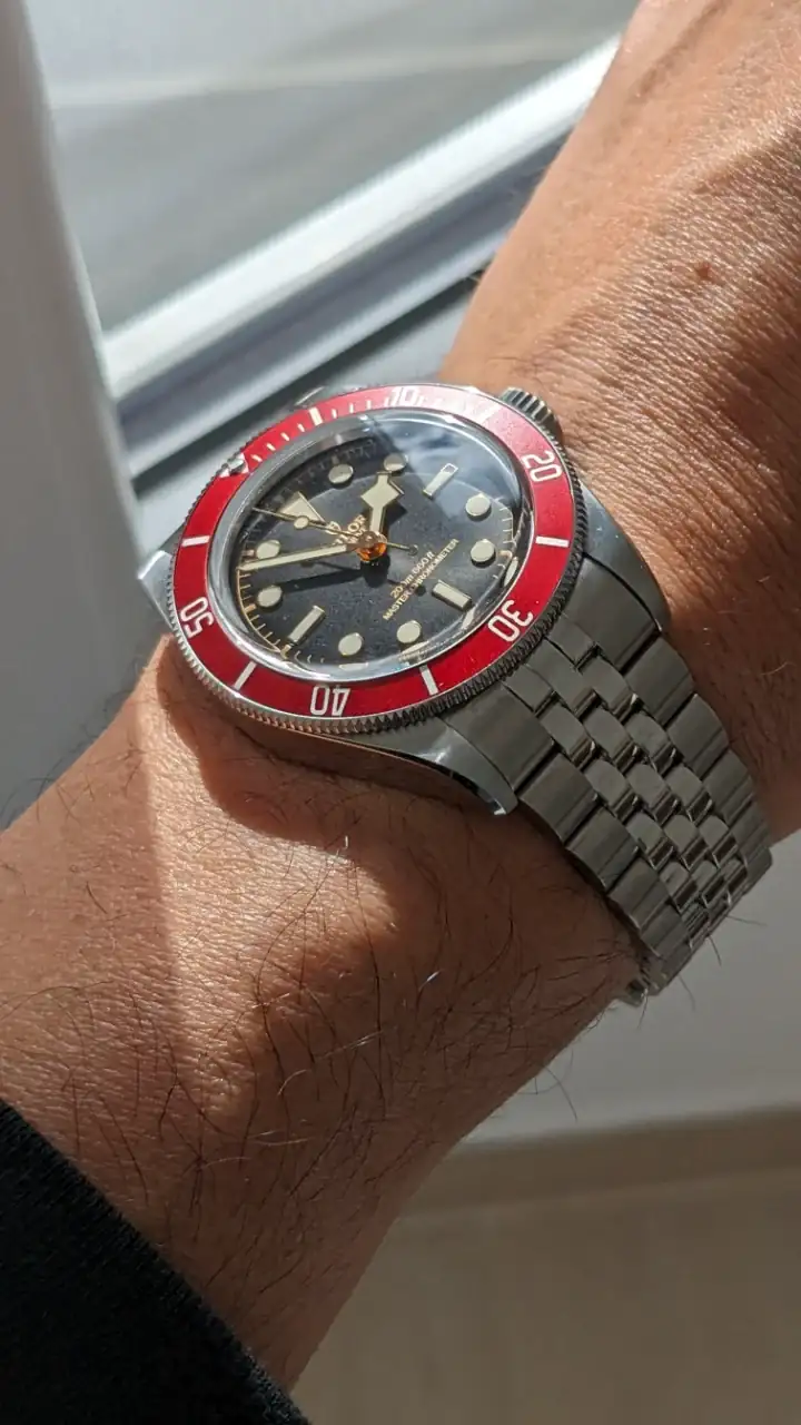 Pues eso compis , el primer TUDOR que tengo , un BB rojo con armis jubile. Tenia un BREITLING HERITAGE 2 46 mm y salí de él por que me lo veía enorme para mi muñeca de 18 cms. Este Tudor es más discreto , aunque mola, pero mi sensación es que el BREITLING estaba mucho mejor rematado y hecho, no se , ya iré viendo.