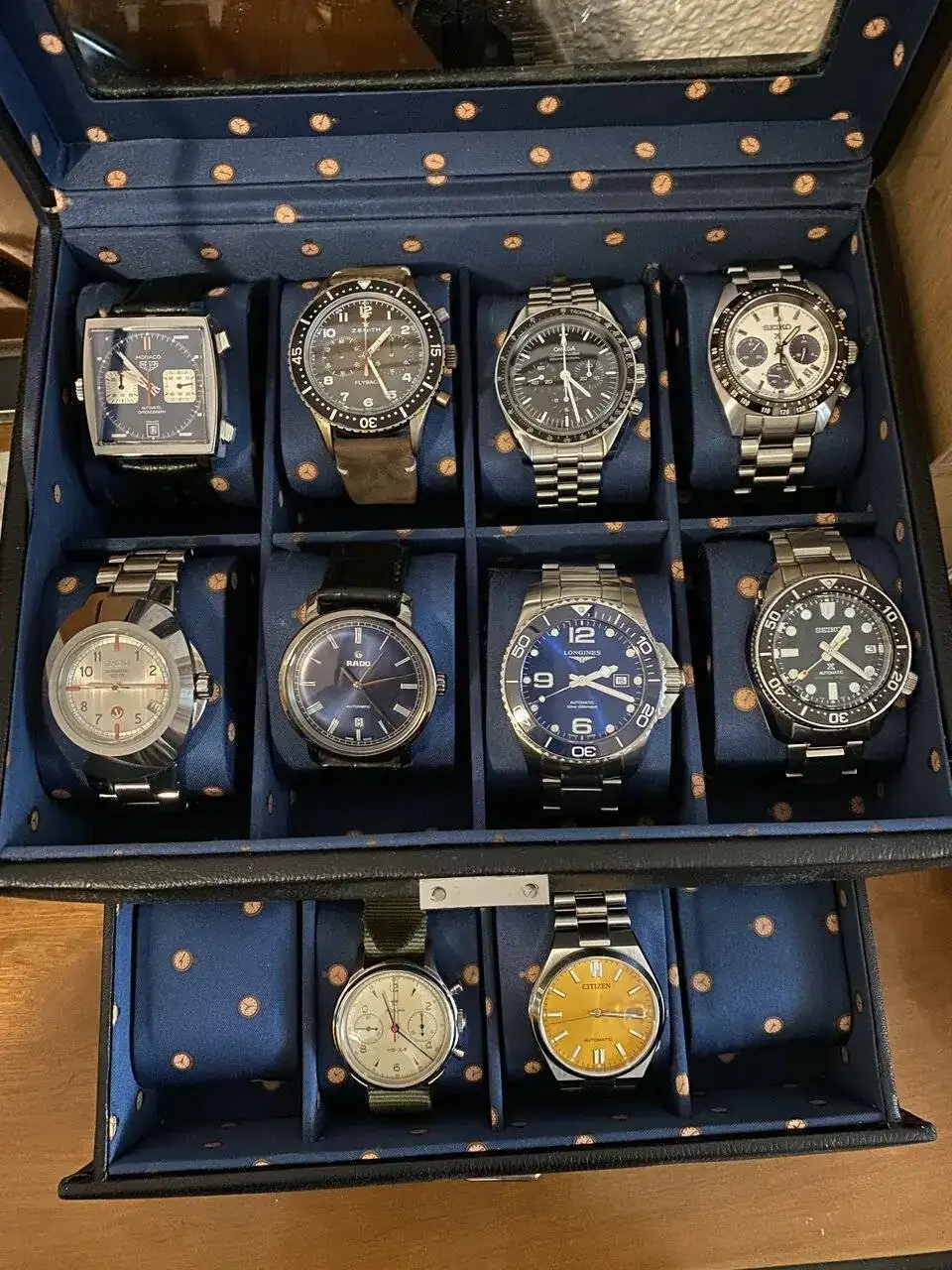Buenas piezas en esa caja el Omega hace buena pareja, aunque por sus comnotaciones del mundo del motor me gusta el TAG. Aunque para el dia a dia elegiria el Longines Hidro vale para cualquier situación, tengo uno aunque aligerado con una correa de silicona.