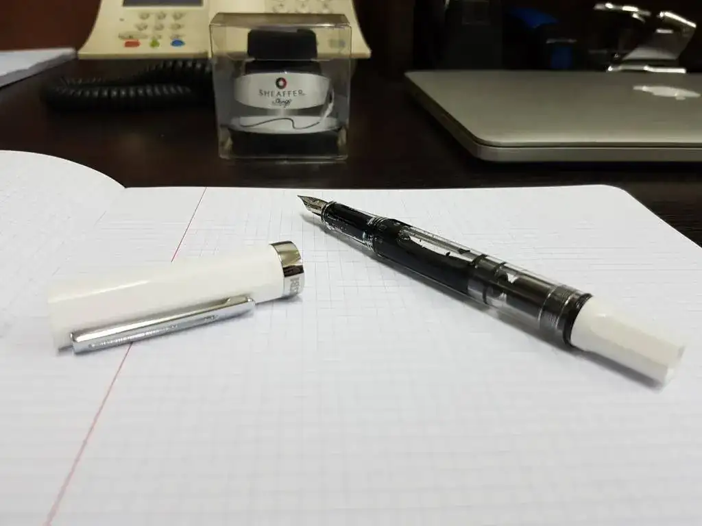 Pues os presento a la primera que me ha llegado hoy que es una TWSBI ECO, es una maravilla lo bien que se desliza el plumín (M), he probado pocas plumas en mi no muy dilatada vida (24) pero va muy muy bien, he leído algún problemilla que han dado estas plumas, esperemos que siga así de bien. Y la segunda es una añeja Sheaffer Imperial no se si III o IV, comprada aquí. El trazo es más fino y me ha gustado mucho el sistema de carga touchdown, curioso la verdad.
