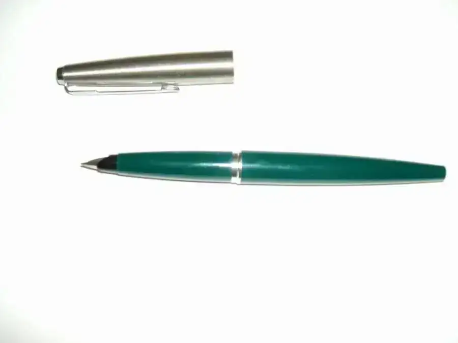 Esta estilográfica me la compré no hace mucho en una papelería del barrio. Cuando la vi, les pedí que me la enseñaran, junto a otras que tenían. Pero esta en concreto me llamó la atención. Estaba nueva, pero sin la caja original. Deduzco que llevaría allí mucho tiempo. Tanto, que sólo les quedaba esta de este modelo. No pude resistirme a llevármela, es ligera, tiene una combinación de colores que me encanta y un aspecto antiguo; por no hablar del bajo precio que tenía (a mi parecer, eso ayuda muchísimo a la hora de decidirse a comprar algo).