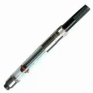 Me ha llamado la atención el convertidor que venía incluido. Es aerométrico (creo que se llama así). Una especie de tubo metálico con un saco dentro para que, cuando se haga presión, se absorba la tinta. Así me lo indicaron en la tienda.