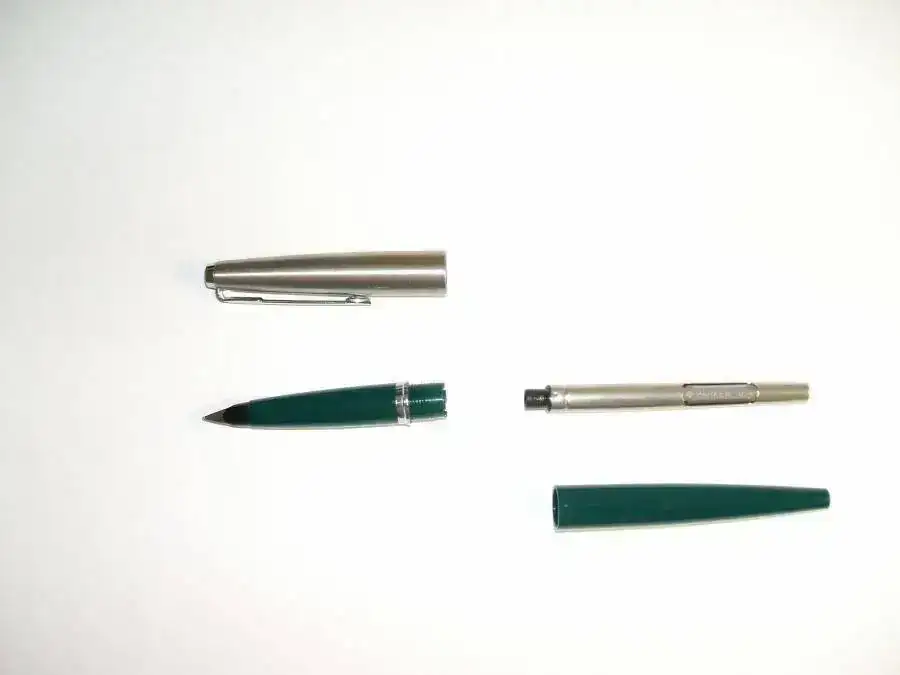 Su longitud es de 13,5 cm con el capuchón y 12,5 cm sin él. Éste va a presión y cierra muy bien. Aunque no se aprecie en las fotografías, en el capuchón está grabado por la parte donde está el clip “PARKER”; mientras que, por detrás, está el logotipo de Parker (una flecha atravesando una elipse) y “MADE IN SPAIN”.
