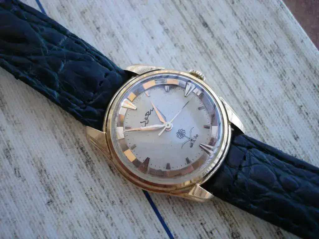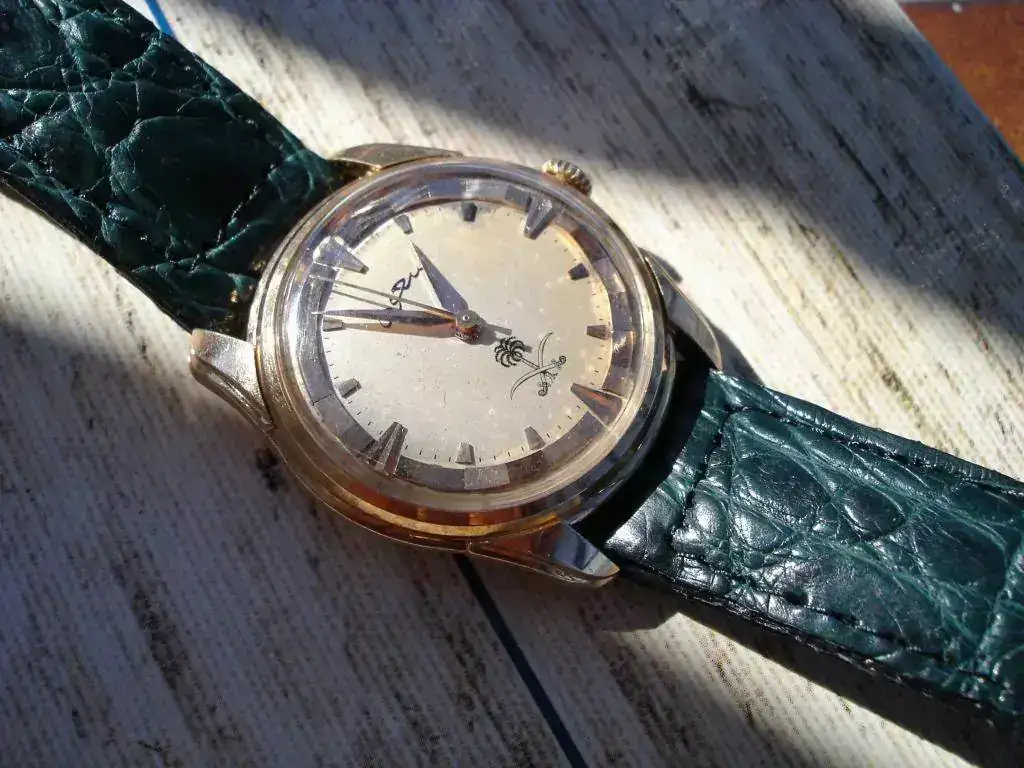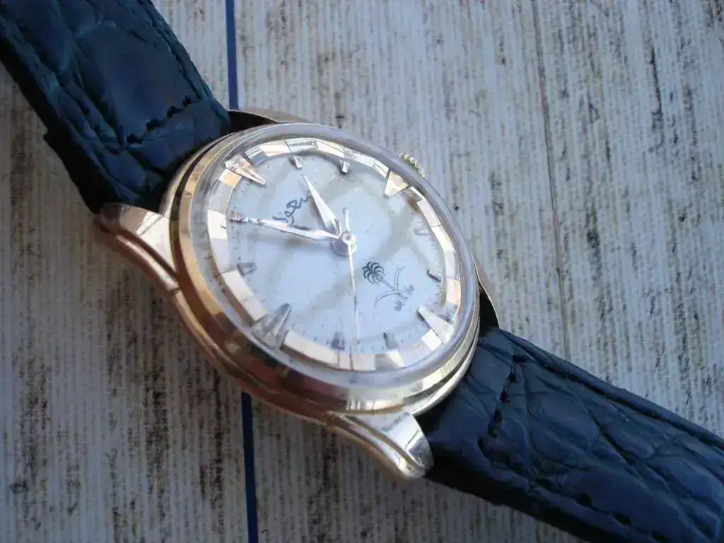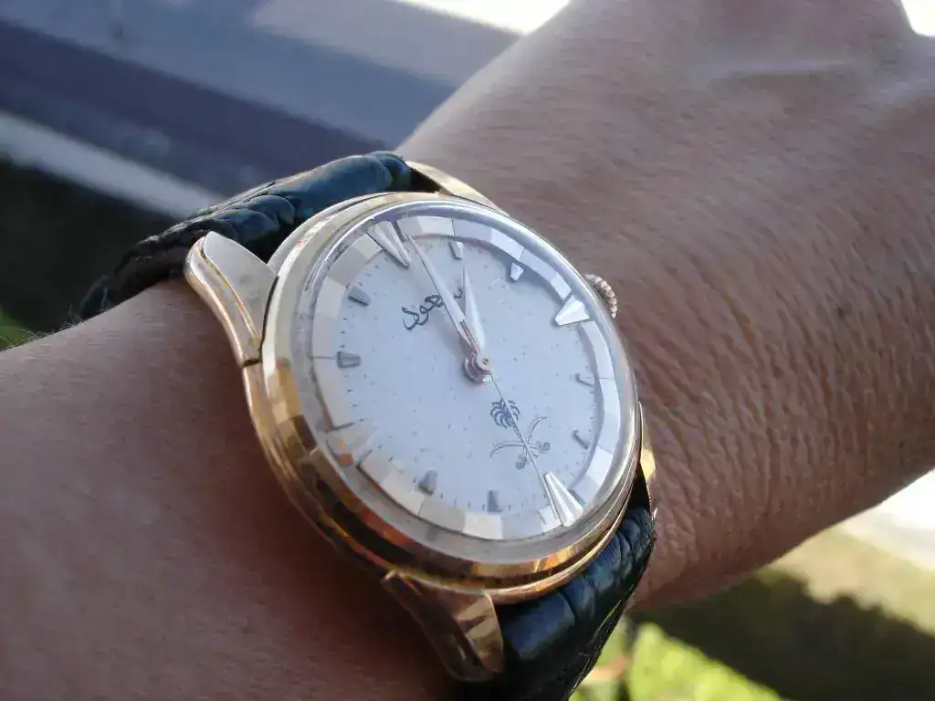 Se trata de una pieza de 1954 y Saúd bin Abdeluziz fue rey de Arabia Saudí entre 1953 y 1964. Los relojes oficiales con que la Casa Real Saudí agradecía los servicios recibidos por sus miembros eran estos Longines.