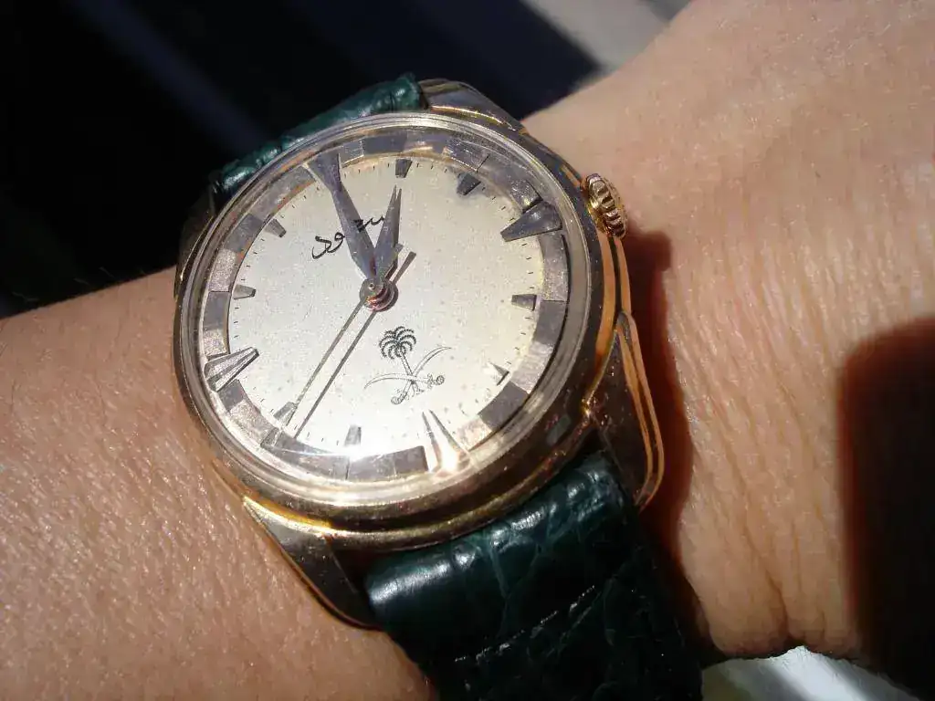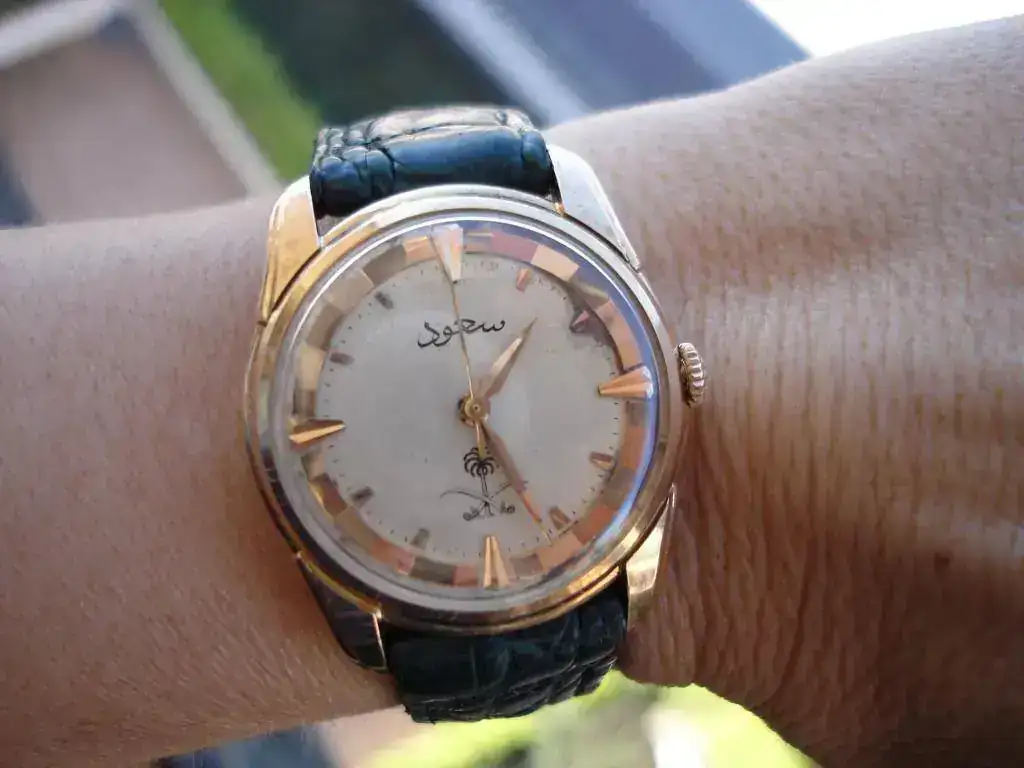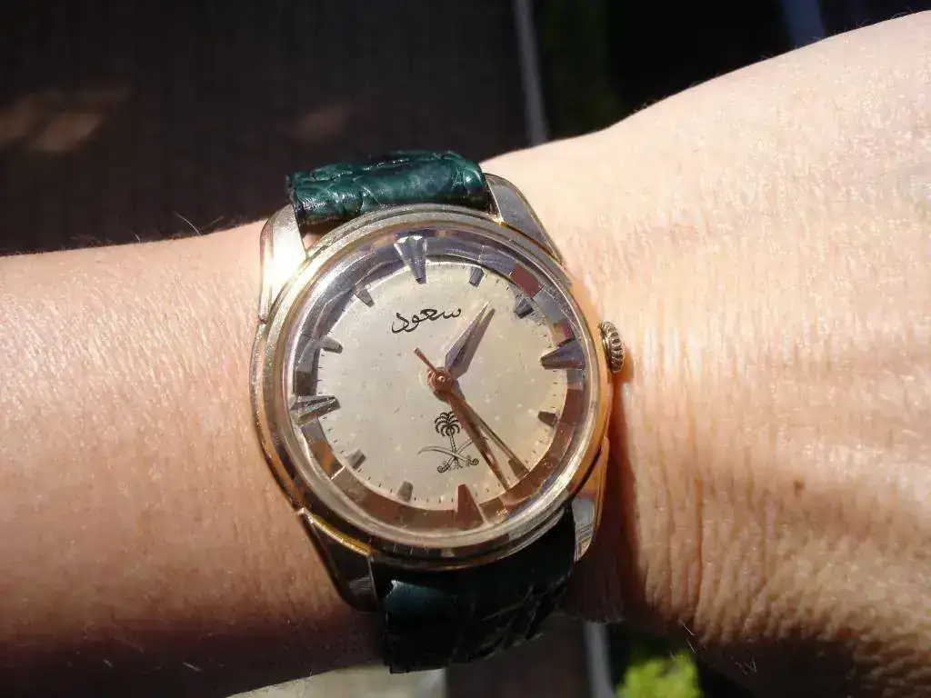 Cuenta que un día él y sus colegas fueron convocados a una sala donde los asistentes del Monarca entregaban dinero y relojes. Según dice, “en aquel momento se habían terminado los relojes oficiales que eran Longines de oro con las espadas cruzadas y una palmera en su estuche de presentación”. El relato sigue con que los sustituyeron por unos Gruens y Hamiltons, y el pequeño príncipe, al ver que el reloj que habían entregado a quien le había estado acompañando no era el oficial, entró en su dormitorio y regresó con uno de los Longines. La anécdota sigue y por si alguien tiene curiosidad por leerla, aquí dejo el enlace: https://adst.org/2015/11/return-of-the-king-saud-visits-the-us/