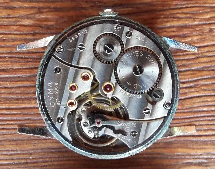 "RELOJ CYMA";Marca Suiza. Reloj antiguo totalmente original, calibre 586k años 50/60 sistema de protección cymaflex de cuerda manual esfera de oro 18 kilates, mide36mm sin contar la corona. Cadena bañada en oro.