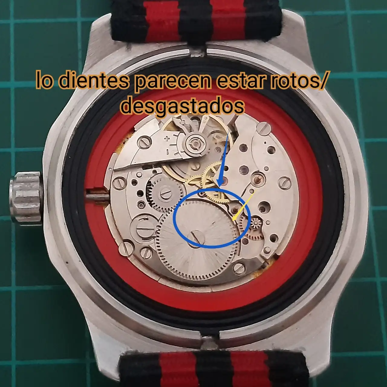 Por curiosidad: El tornillo del ratched wheel, esa rueda más pequeña junto a la grande, se ve algo desgastado. ¿Has trstado de aflojarlo? Te comento porque ese tornillo en concreto suele girar en sentido contrario, y se afloja en sentido de las agujas del reloj. Te lo digo sólo por si acaso y que no lo rompas. Es que la muesca que veo parece hecha forzando un destornillador hacia el lado que no es en este tornillo en concreto. De haber sido hecha así por el fabricante y no por tí, me parece un detalle muy chapucero y de falta de control de calidad de esos que me encienden luces rojas. Si yo abriera un reloj y viera un tornillo así, no volvería a comprar ninguno más de esa marca. Seiko marca estos tornillos con cuatro rayas y citizen los pinta de negro. Muy mal por esta marca rusa por dejarlos así.