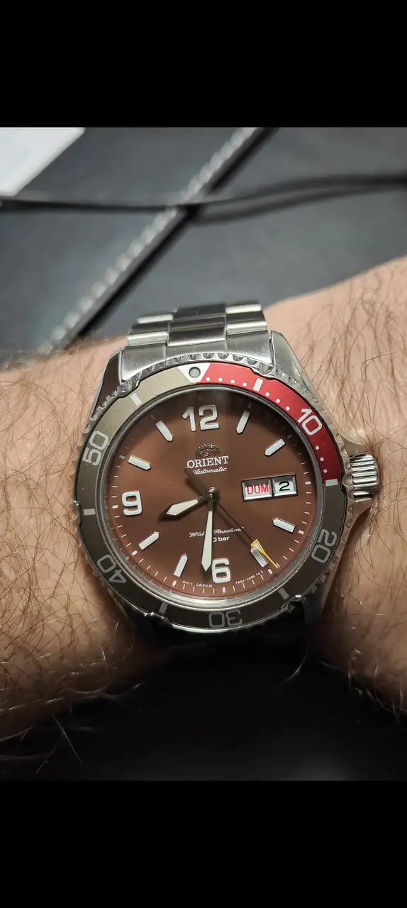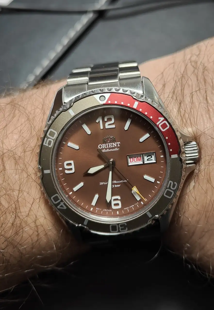 Veréis, este verano decidí aumentar mi colección con el Orient Mako III (RA-AA0820R), el cual, aunque me hubiese gustado un milímetro más grande (42 mm tiene su esfera y yo lo hubiese preferido en 43) tiene una estética que me flipa, y más en la combinación de dial naranja, bisel gris y rojo. Aquí os dejo una foto para que lo veáis: