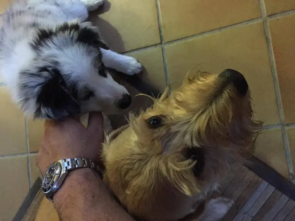 Este año ha sido un poco duro, hemos perdido una gata y muy recientemente un cruce de Border Collie que nos dejó muy buen sabor de boca, así que después de varios perros adoptados decidimos comprar uno "de marca" y desde hace una semana tenemos a Ouka, una preciosa Border Collie de dos meses y medio.