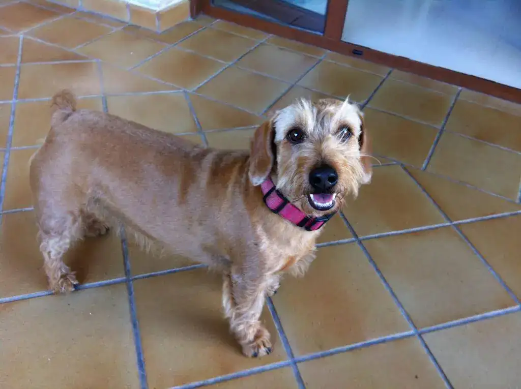 Nana es un cruce de Teckel, la rescatamos cuando la iban a sacrificar con tres meses. Dió la casualidad de que llevábamos un perro muy mayor y muy malito al veterinario y salimos con ella. Ya tiene 7 años.