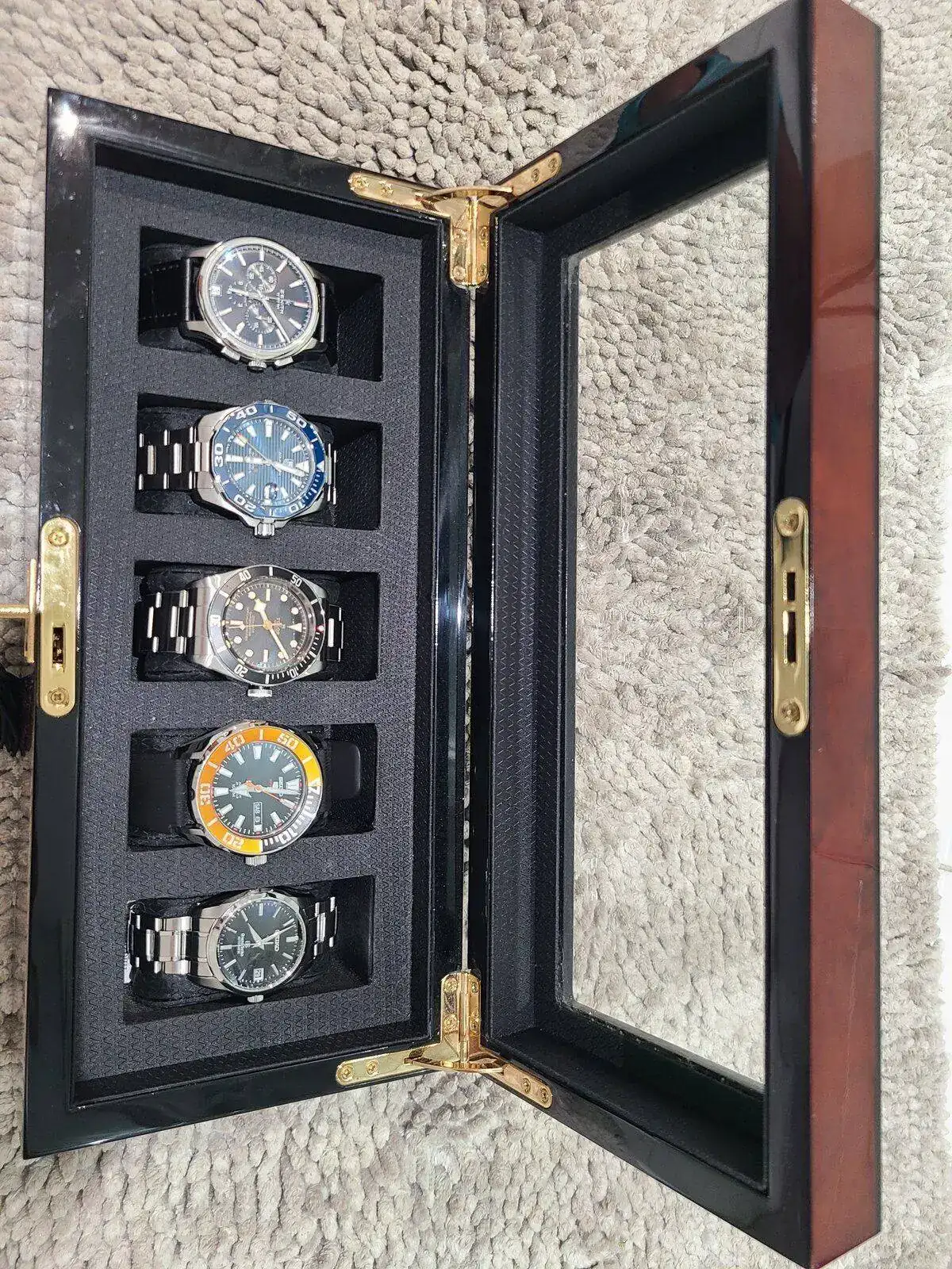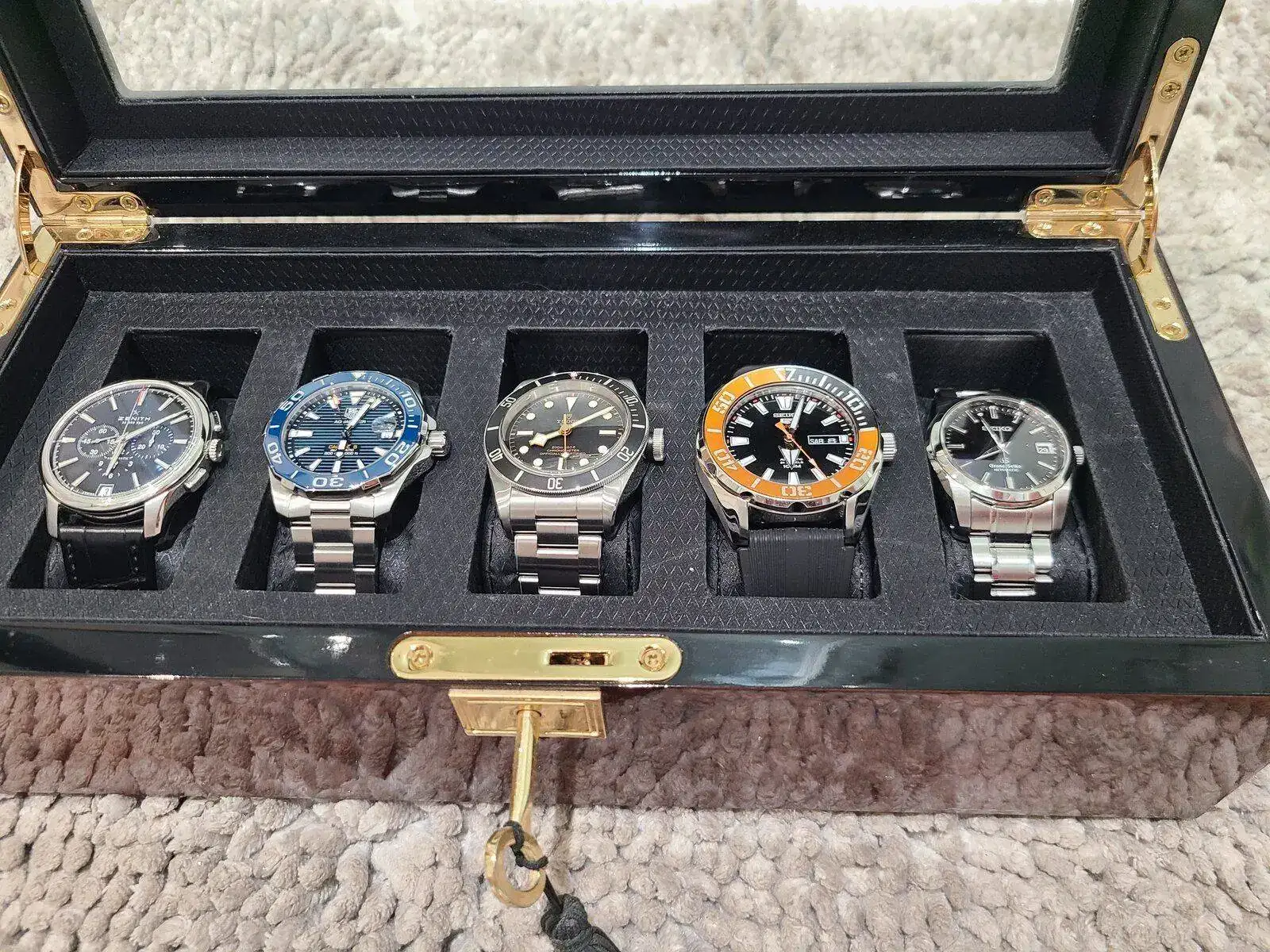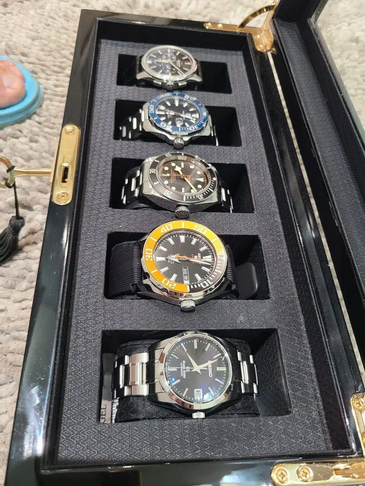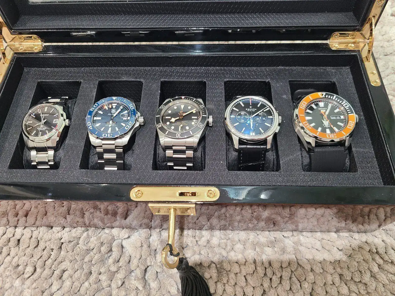 Cómo se va haciendo costumbre me gusta mostrar el estado actual de mi caja al inicio de cada año. Cómo siempre la colección cambia en un 50% o más de un año a otro, éste gusanillo que se le mete a uno dentro 😉 nunca está tranquilo y en mi caso me cambia de gustos constantemente por éso unos salen y otros entran, o hasta regresan como es el caso del Aquaracer que ya lo había tenido antes en la versión 43mm. Bueno, sin más rollo los saludo a todos y le deseo y próspero año nuevo.
