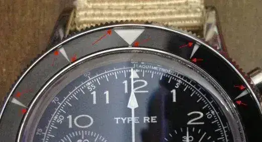 Para mí el bisel es una pieza fundamental de reloj. Debo decir que se ve de calidad. Las marcas encajan exactamente en los números. Pero fue lo primero que me empezó a molestar en el reloj. Resulta que si lo miro de frente, todos los números y las marcas parece que están cortados en su parte superior (la parte exterior del bisel). Como si no estuviesen bien centrados. Como si el bisel se hubiese quedado medio milimetrito más estrecho de lo que debería ser o que el tamaño de los números y las marcas fuese un poco más grande de lo que debiesen. Eso puede ser debido al corte del cristal o superficie que va encima del bisel que produce el "corte" de las marcas y números. Sé que es una tontería pero a mí se me van los ojos allí. No sé si esto pasa en mi unidad o en todas. Intento subir una imagen que me ayude como ejemplo: