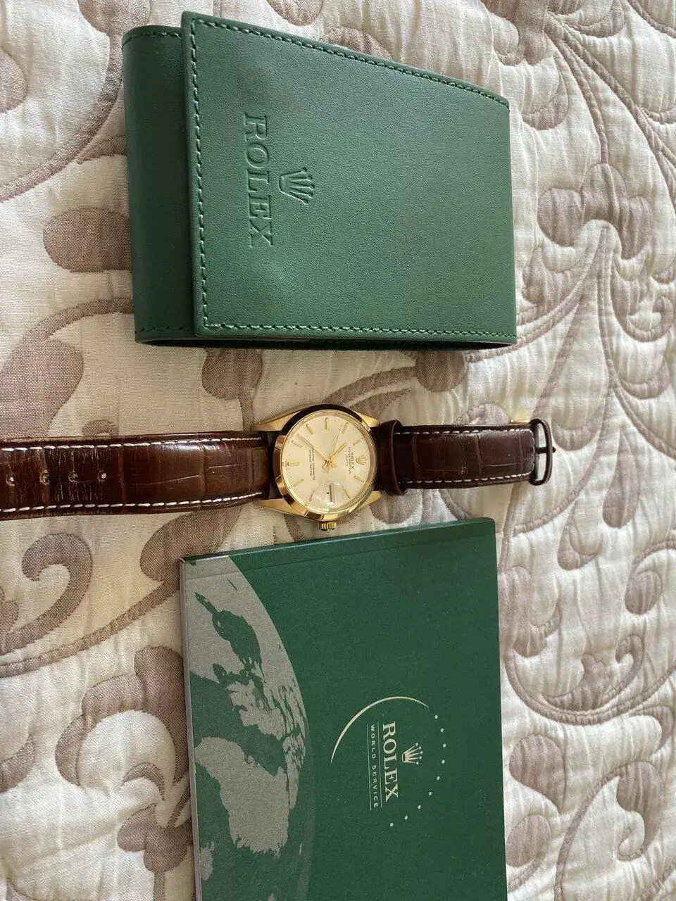 Precioso. Alabo el gusto de tu abuelo. Un reloj atemporal.Para los que tiene varios rolex o que los tienen hace tiempo seguramente este post les causará un poco de risa por mi ignorancia pero de verdad mi experiencia con el servicio rolex ha sido extraordinaria. Como ya lo dije en elgun hilo, tengo un Rolexx 1500 que es herencia de mi abuelo, comprado en 1966. Nunca había ido a mantención en estos casi 60 años y ya tenía el acrilico roto y el mecanismo de rosca de la corona no funcionaba además se atrasaba cerca de 16 segundos al día. Luego de 3 meses me avisarón que estaba listo. La verdad es que quedó como nuevo. Corona y acrilico nueo, pulido, ajuste. Las agujas se les repuso el materila luminoso que habían perdido. Precio del servicio, a la conversión actual, aproximadamente 1000 Euros. Es mucho dinero, si, pero de verdad el servicio fue excelente. Todo impecable y una variación de +0.5 por dia en estas primeras 24 horas. Muchas veces critiqué los precios de Rolex pero de verdad el servicio fue excelente. Se me olvidaba, me lo entregaron con un pequeño folleto/libro describiendo el servicio y un estuche de viaje verde muy bonito.