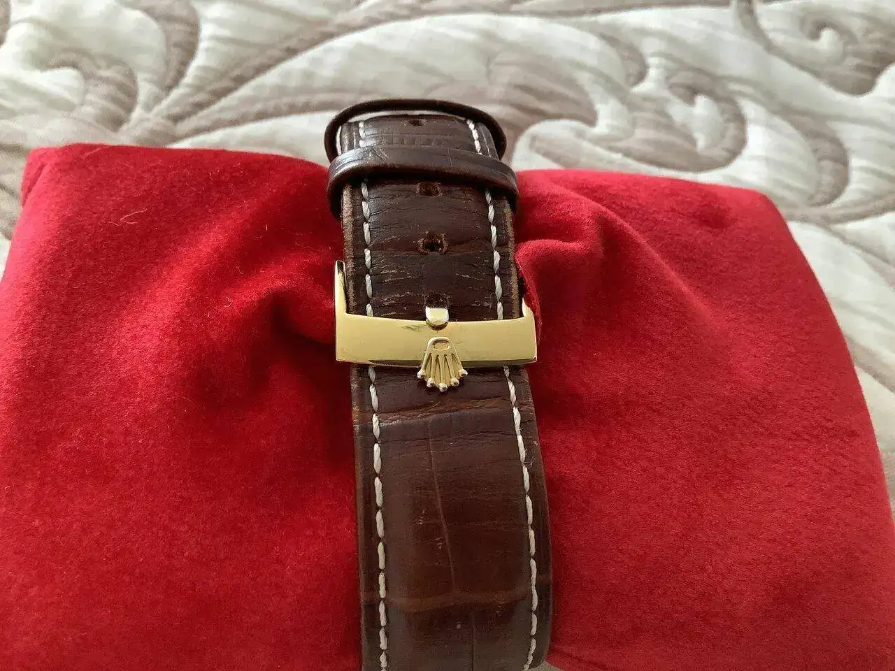 Ese es el tipo de correa que me gusta a mi tambien. De alligator negra brillante.Precioso reloj compañero !!! en cuanto a las correas, no tengas prisa, ya llegará la adecuada; yo le pondría una buena correa de piel de cocodrilo oscura, incluso negra, con la piel en acabado brillante, quedaría espectacular el contraste del negro con el oro y el blanco de la esfera, pero vamos, que no te agobies y disfruta de esa preciosidad de reloj.