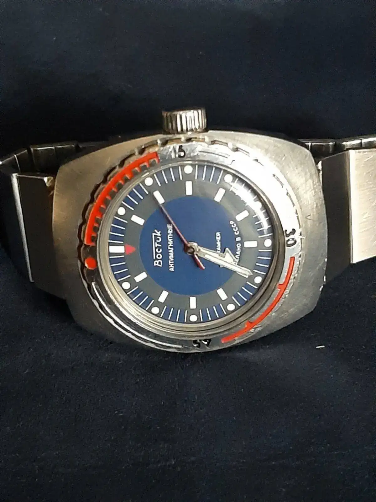 Dentro de mi limitada experiencia el dial me parece original, digo lo anterior por el hecho de que el lumen dura lo que dura un porro en un concierto de rock, y las manecillas tienen diminutas manchas y puntos comunes en los relojes vintages, pero pese a todo esta en un magnifico estado.