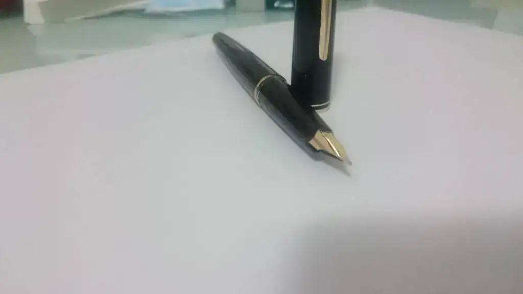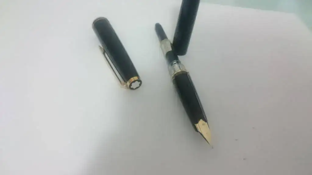El estado de la pieza es impecable, con la estrella blanca en el capuchón y en la parte inferior. En el aro dorado del capuchón se lee MONTBLANC y W GERMANY. Es decir, fue fabricada en la RFA, por lo que su año de fabricación es seguro anterior a 1989, fecha en la que cae el muro de Berlín.