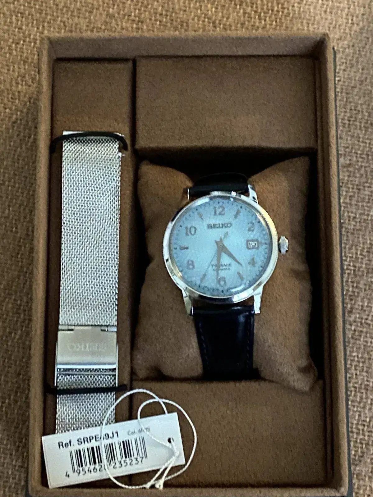 Además viene con milanesa y piel en la dotación, imagino que mejorando el bracelete de los Presage que suele ser lo menos bueno. Yo tengo uno y estoy encantado con la compra.