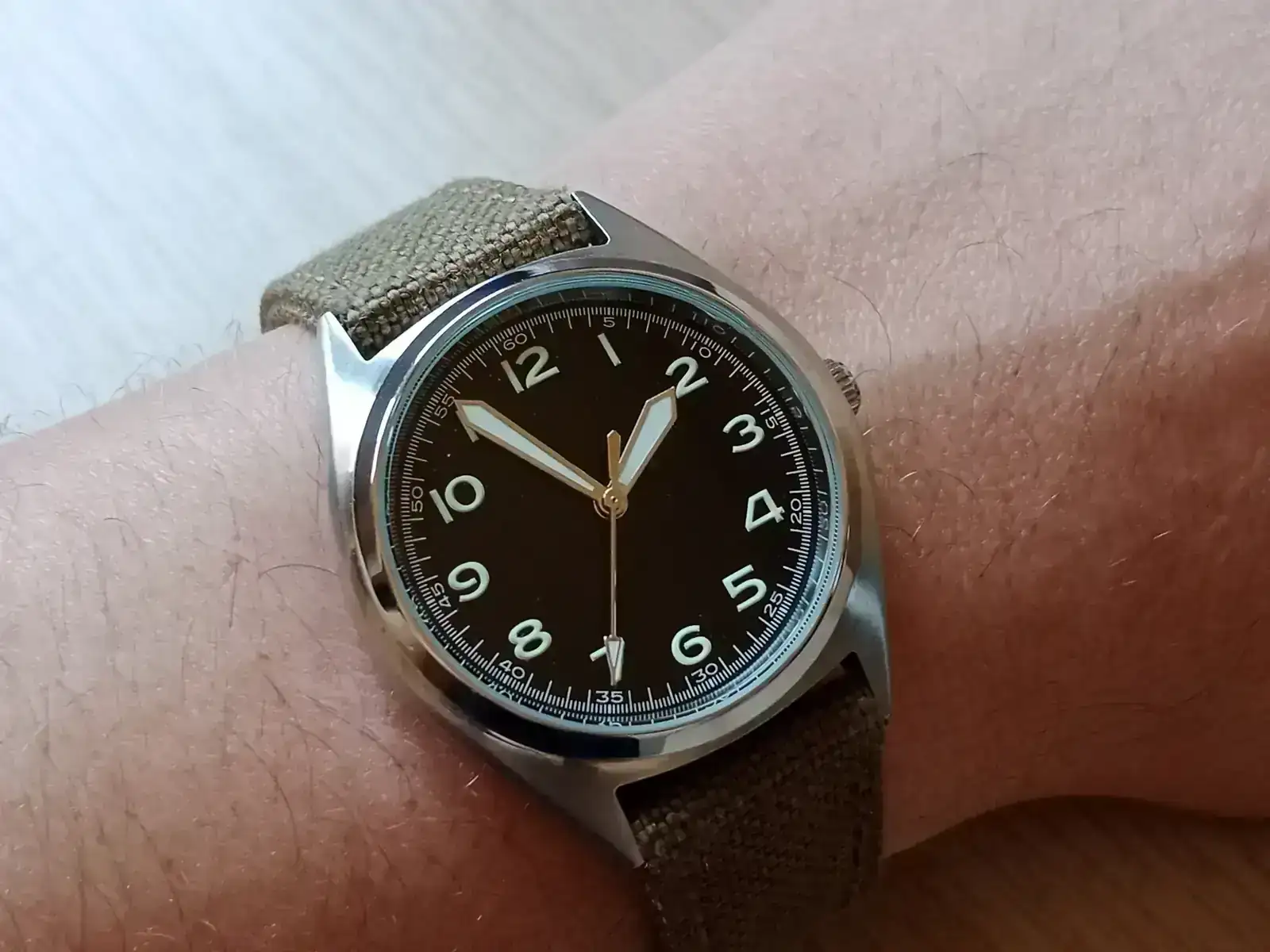 El dial es de Andoandoando, de falso enamel (sintético, funde a 150 grados, no como el de vidrio) y con una luminova suiza muy buena.
