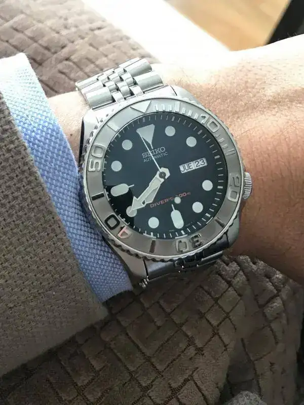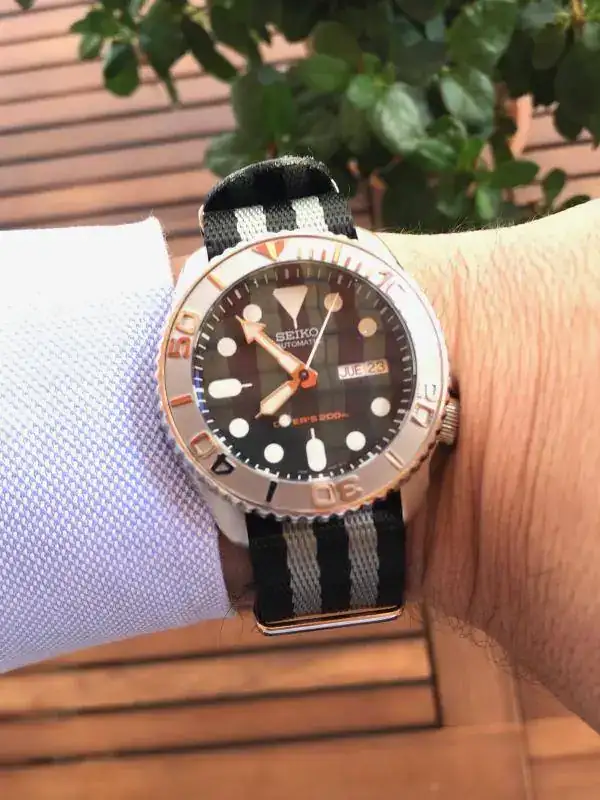 Buenas tardes a todos. Pues eso, como ya había comentado en algunos hilos sobre dlwatches, los mod y demás, acabo de recoger de la relojería mi maravilloso 007 con un zafiro (tenía el plexi arañado y me dañaba los ojos) y un insert cerámico, en concreto el yacht-master. El reloj es tan agradecido que hasta soporta estas travesuras que le hacemos. También entiendo que a muchos le parezca un sacrilegio, pero al menos el zafiro considero que es una mejora muy necesaria. Seguramente lo próximo, un armis superoyster. Ahí van unas fotos con su armis, una nato que le viene pintada a mi criterio y un nylon naranja. Mañana es el que se viene conmigo al trabajo. Saludos!!!!