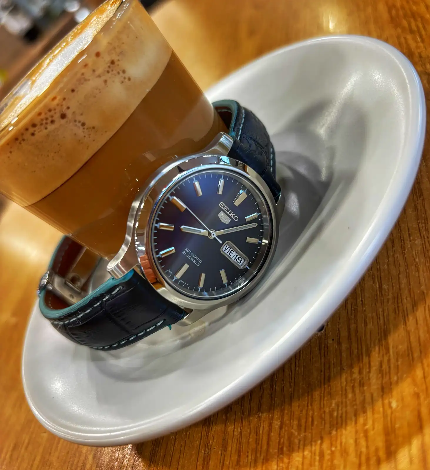 Me gustaria enseñaros el Seiko 5 que adquiri en 2018 por el módico precio de 72€ ahora el mismo reloj vale en internet casi 190€. Es un reloj que me encanta su estética y funcionalidad es única. La esfera es gris y tiene lumen tanto en las agujas como en los marcadores de las horas. Por la parte trasera se puede ver la maquinaria. La pulsera a la vista es tosca pero una vez puesta es suave y el reloj no pesa casi nada una vez puesto en la muñeca. Dicen que se recomienda engrasarlo cada 3/5 años yo la verdad soy de los que piensa que si un reloj funciona bien es mejor no tocarlo aunque tenga 20 o 30 años de uso diario nosé si compartís mi opinión en este sentido. Mi Seiko solo lo uso 1 o 2 dias generalmente los findes. Adelanta unos 20 segundos diarios más o menos. En definitiva un gran reloj japonés elegante y discreto.
