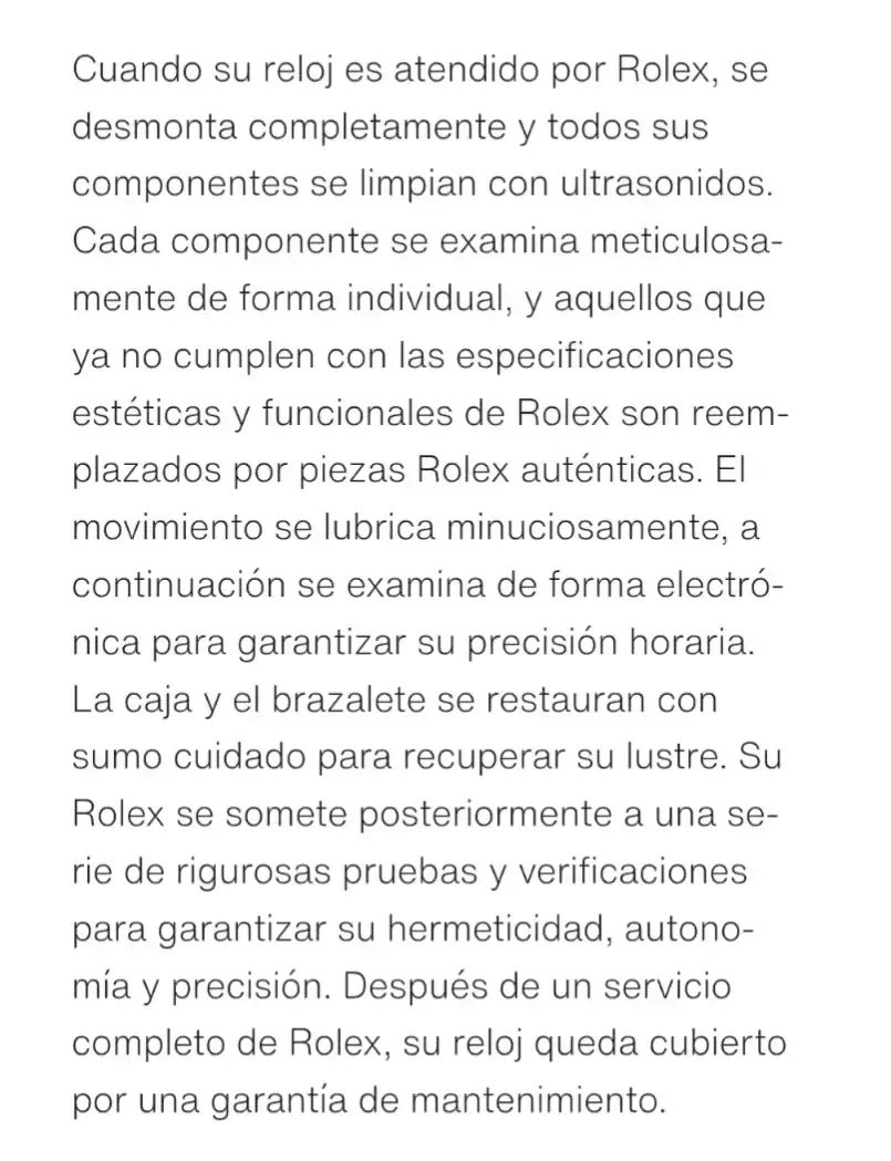 Esta captura es de cuando se hace el mantenimiento, donde dice que las piezas que no cumplen las especificaciones estéticas y técnicas se reemplazan por unas originales. Está claro que una esfera repintada no cumple las especificaciones estéticas.