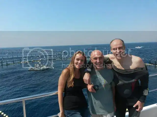 Yo ya había ido hace unos años a hacer un reportaje sobre esta granja. He vuelto porque hace un tiempo que han empezado una nueva actividad, que les da unos ingresos extras. Organizan salidas para que los turistas puedan bañarse con los atunes. Por 42€ tienes el paseo en barco y el baño de una hora dentro de la red donde estan los atunes.