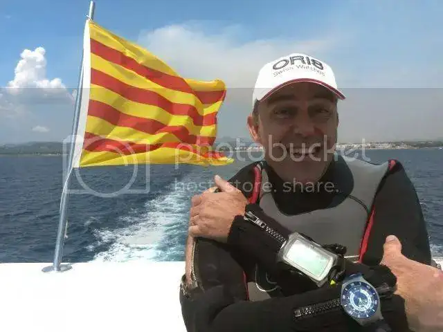 De camino, enseñando los dos aparatos, con la gorra de Oris que me acababan de regalar hace poco en el encuentro de RE en Barcelona