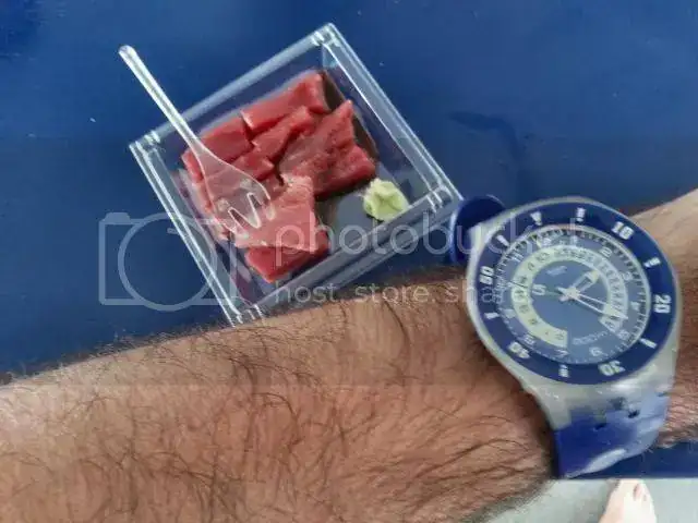 En el viaje de vuelta nos ofrecieron un sashimi de atún, que estaba buenísimo. El Swatch tampoco quiso perdérselo