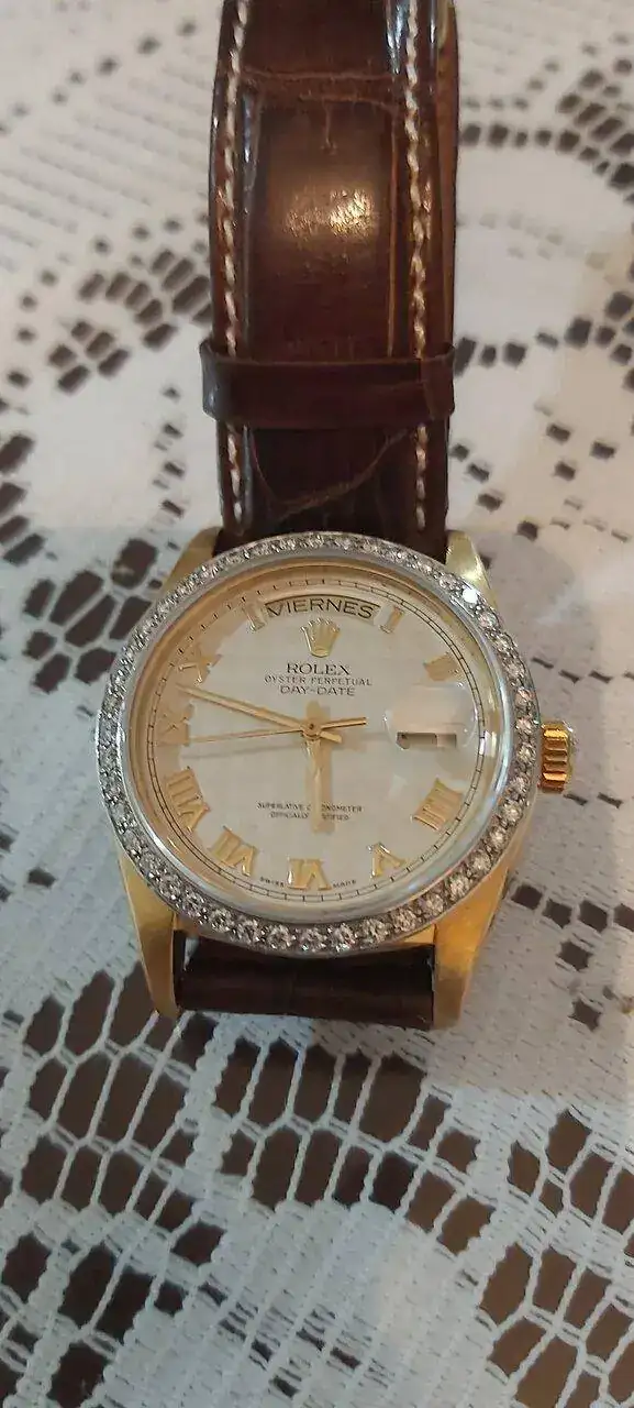 Puff, lleva mucho cuidado, y úsalo sólo donde razonablemente puedas. Mi vecino de al lado, con uno igual, en oro blanco... Pues, ya no lo tiene. Imagina. Y sigue teniendo mano. Mucho, mucho cuidado. Y enhorabuena. Ese DayDate en 1975 estaba a 555.000 pesetas, cuando el Sub a 25.000 pelas. Si la proporción sigue, tienes un auténtico tesoro en la muñeca. Y si no es la misma proporción, pues...también.
