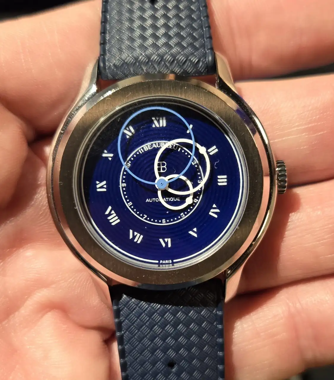 BEAUBLUE, definitivamente estos relojes tienen su encanto. Dejando a un lado el tema de la facilidad de leer la hora (que me parece que no es tan difícil), llaman mucho la atención. Bien construidos y a mi en lo personal me parece un encanto ver correr ese segundero.